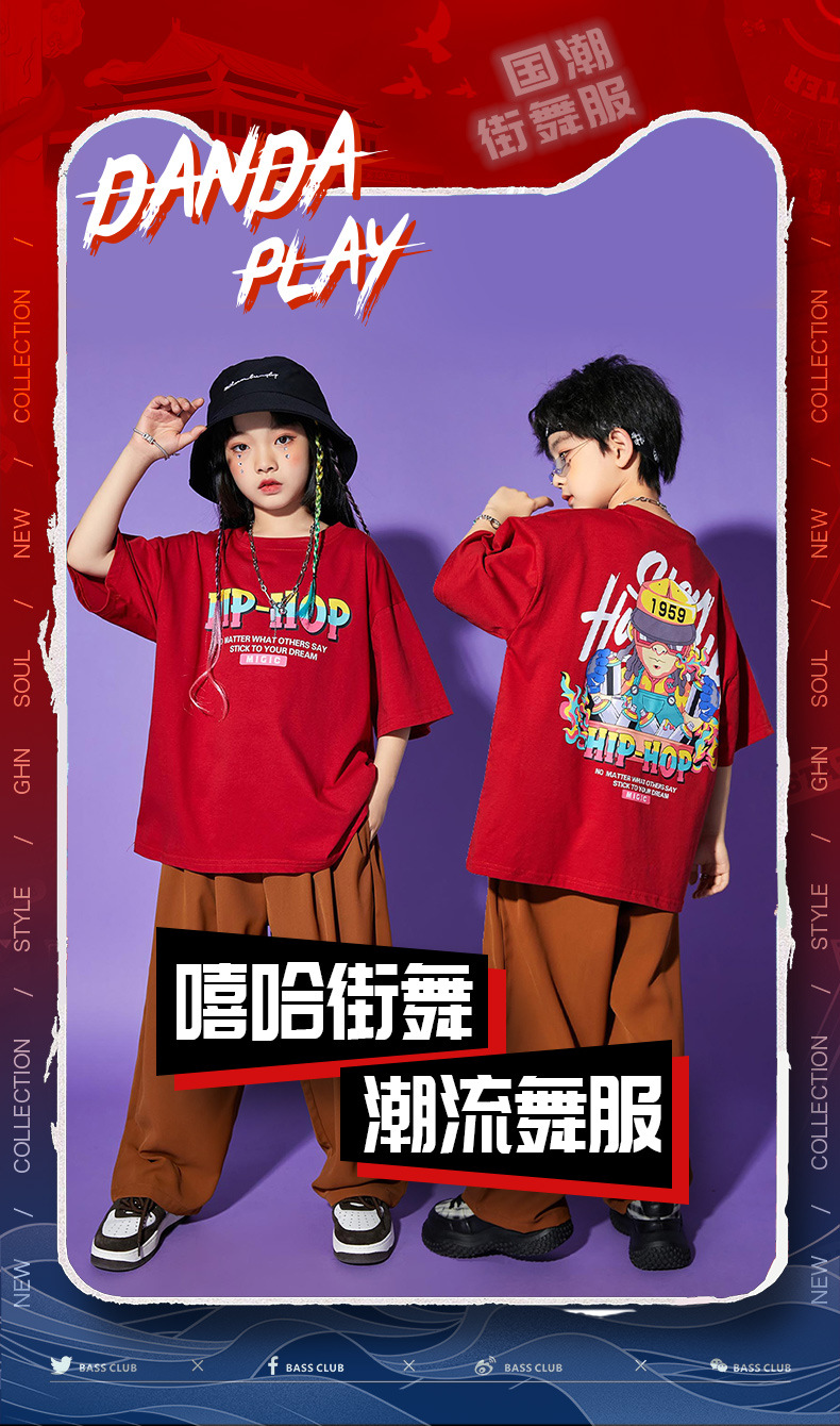 힙합 세트 소년 패션 의류 어린이 힙합 튀김 거리 힙합 어린이 의류 여름 패션 소녀 멋진 의상스토어 가기