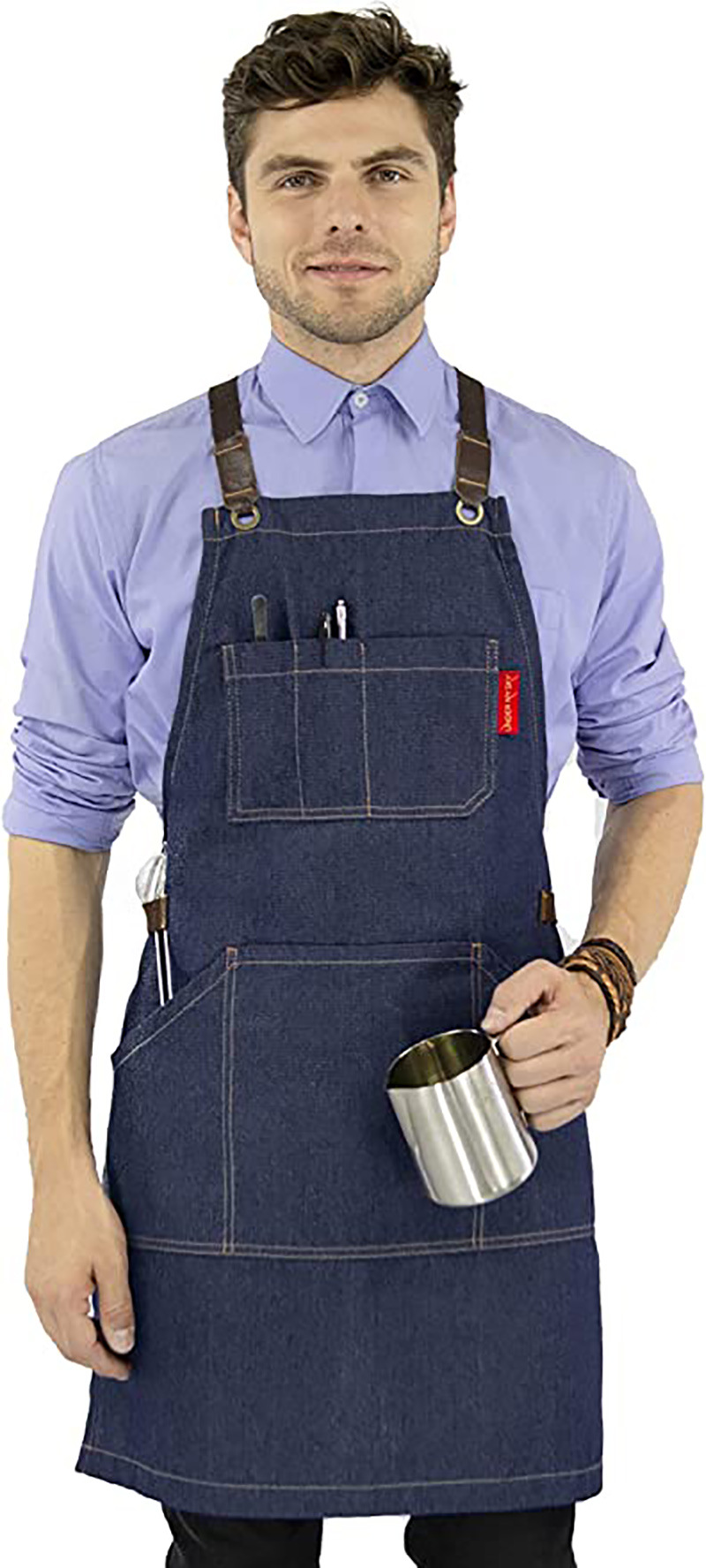 아마존 한국어 버전 데님 앞치마 사용자 정의 로고 바리 스타 베이킹 우유 차 가게 네일 작업 옷 캔버스 앞치마스토어 가기