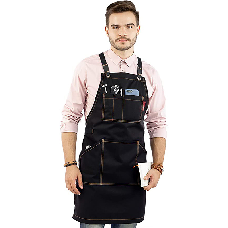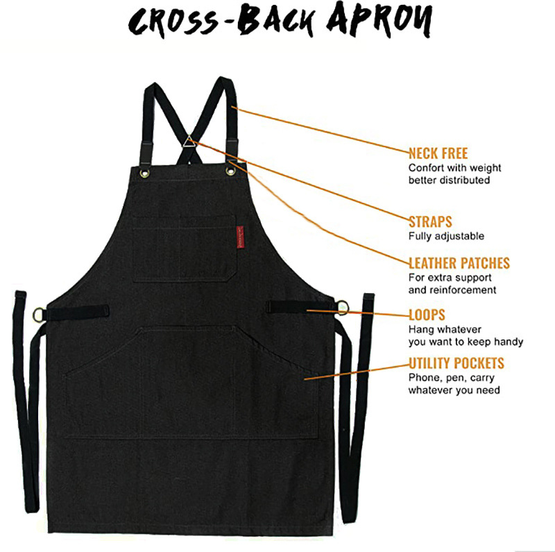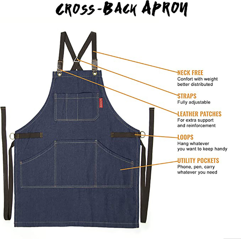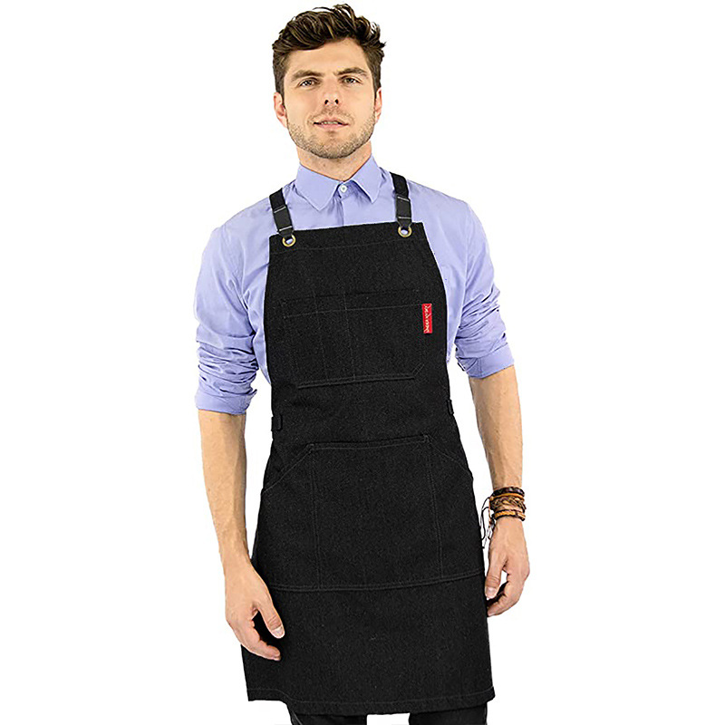 아마존 한국어 버전 데님 앞치마 사용자 정의 로고 바리 스타 베이킹 우유 차 가게 네일 작업 옷 캔버스 앞치마