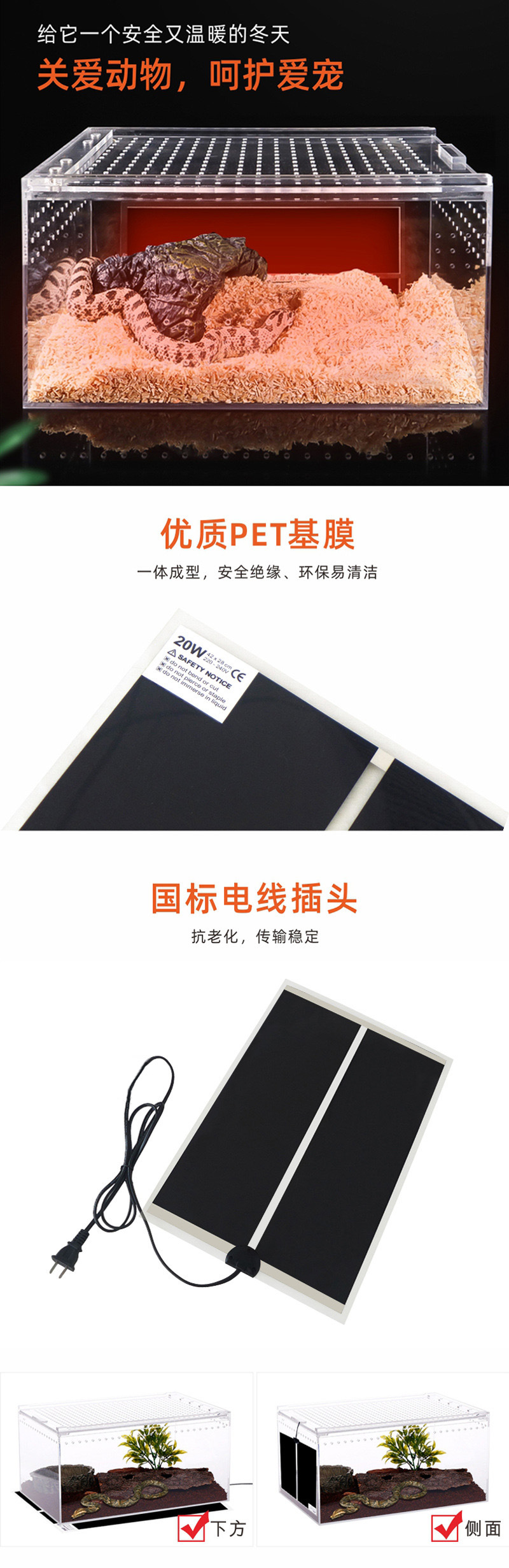 다기능 파충류 난방 패드, 항온 파충류 애완동물 보온 패드, 원적외선 파충류 및 어항 난방 패드