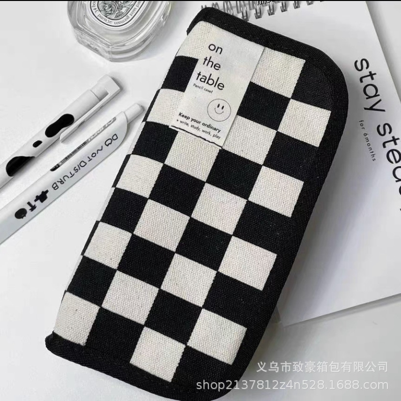 大容量笔袋文具袋简约棋盘格小众铅笔袋中学生帆布收纳ins风少女