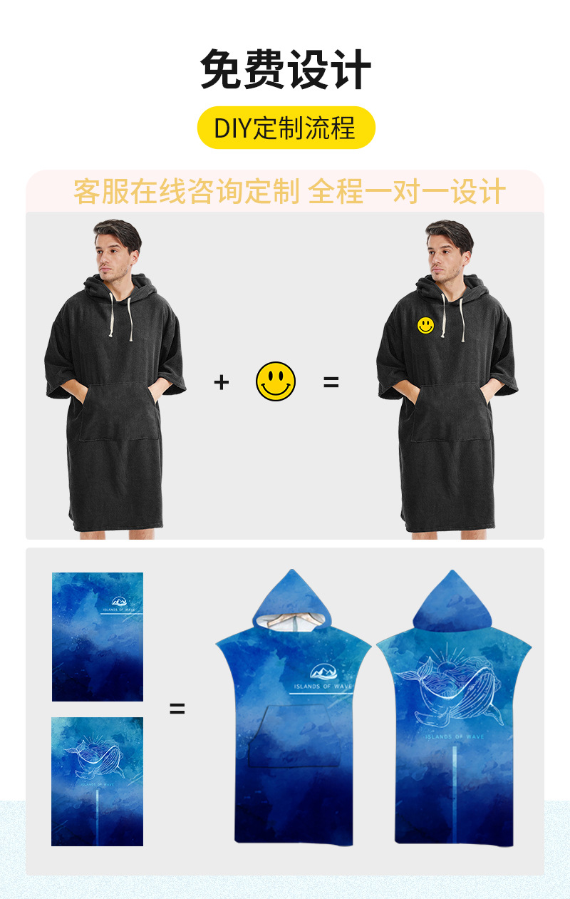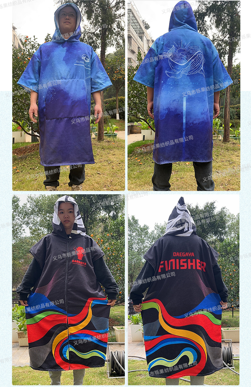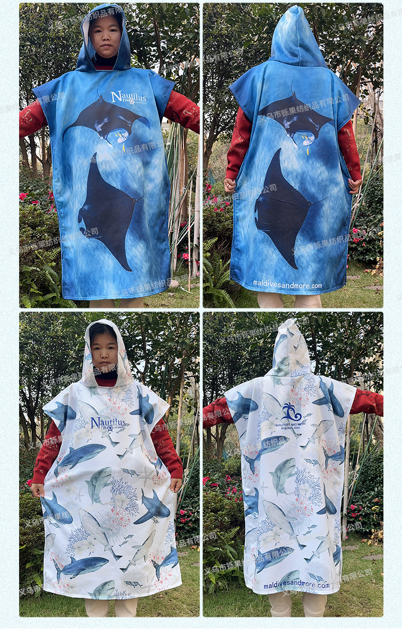 크로스 보더 두꺼운 극세사 후드 망토 목욕 타올 속건 망토 수영 해변 서핑 남성 및 여성 교체 목욕 가운