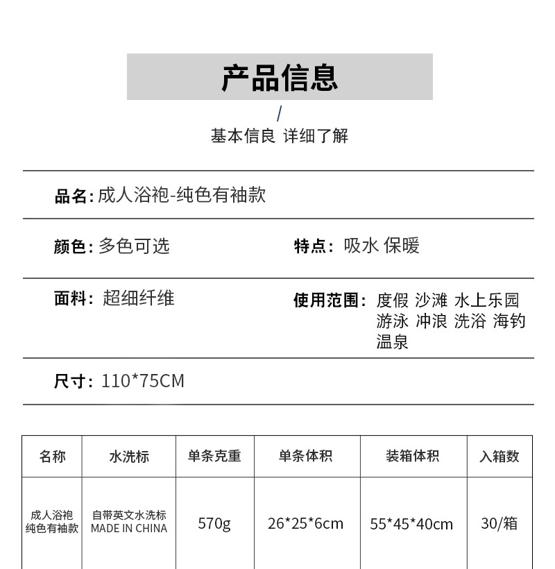 5.产品尺寸:衣长110cm*衣宽75cm,