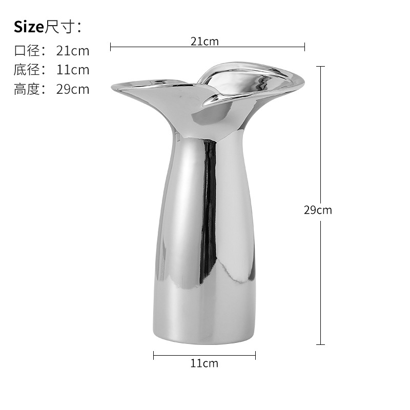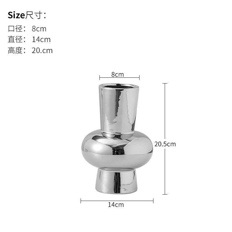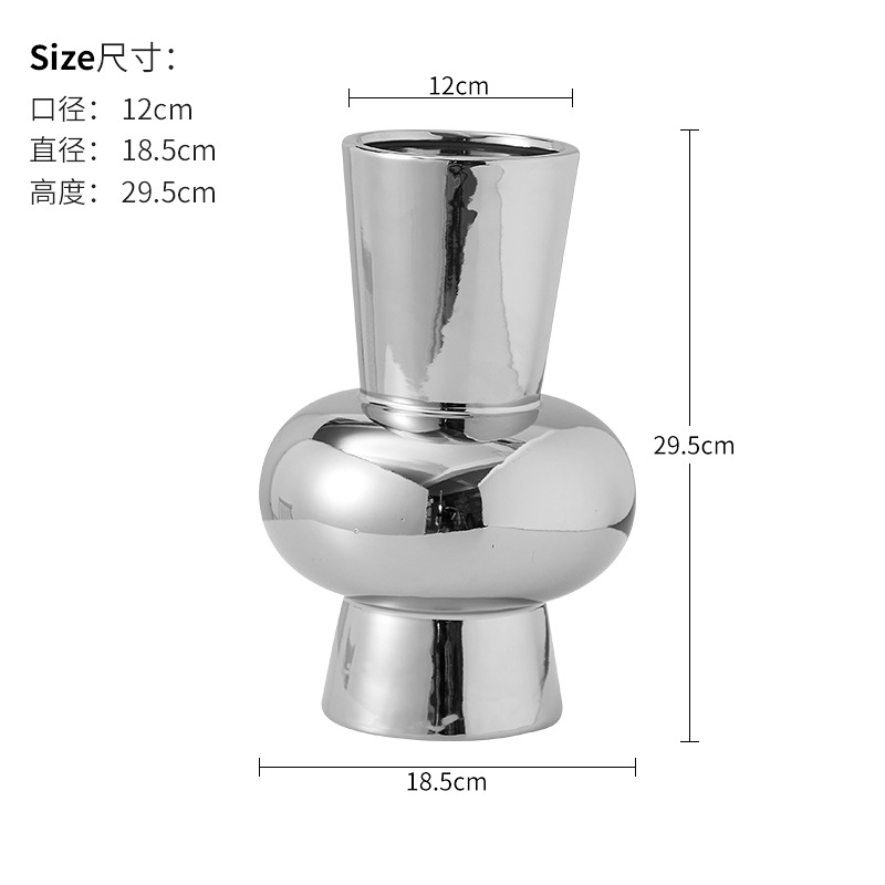 북유럽 조명 럭셔리 세라믹 꽃 도자기 전기 도금 실버 꽃병 꽃 장식품 거실 식탁 현대 장식 부드러운 장식
