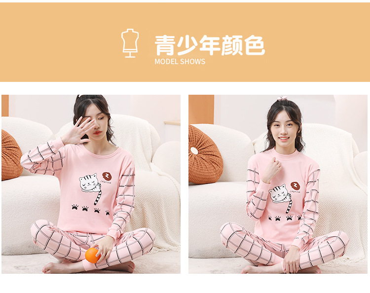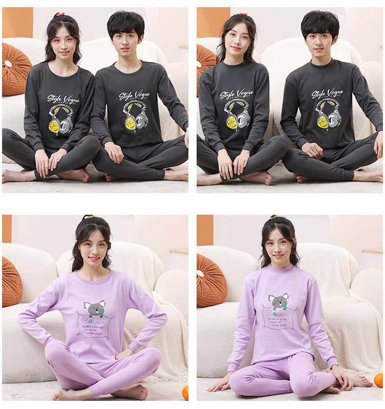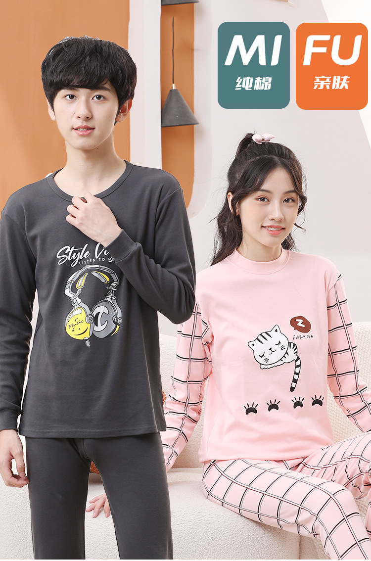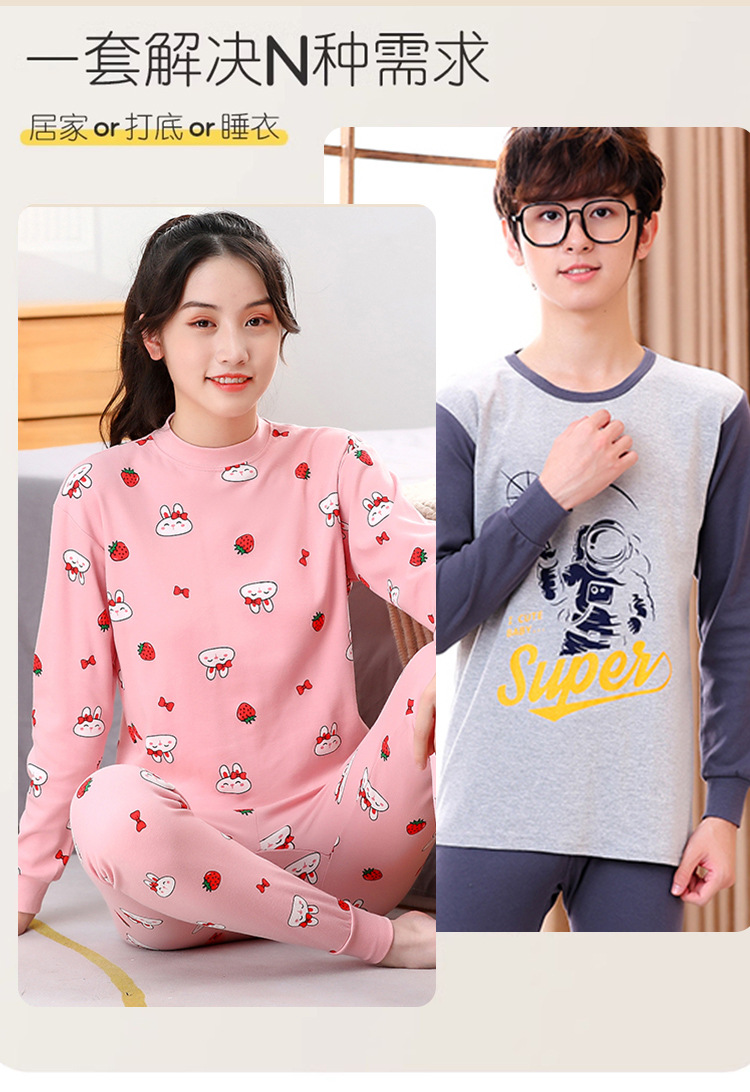 십대 면 속옷 세트 가을과 겨울 중학교 어린이 가정복 중학교 학생과 고등학생 가을 옷과 바지 기초스토어 가기