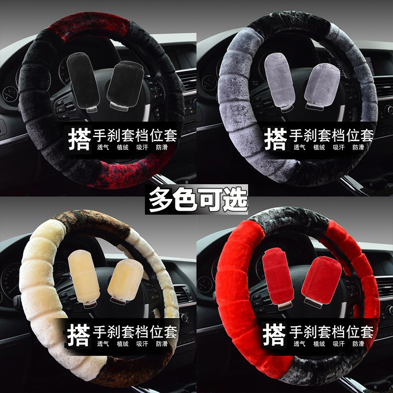 국경 간 대외 무역 세대 새로운 짧은 플러시 겨울 핸들 커버 자동차 핸들 커버 유니버설 따뜻한 겨울 미끄럼 방지 커버