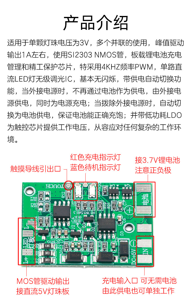 DC LED 충전 보호 무단 터치 디밍 데스크 램프 제어 보드 DIY 수리 범용 데스크 램프 회로스토어 가기
