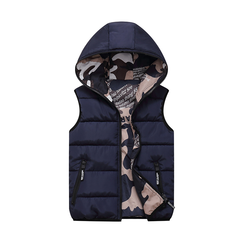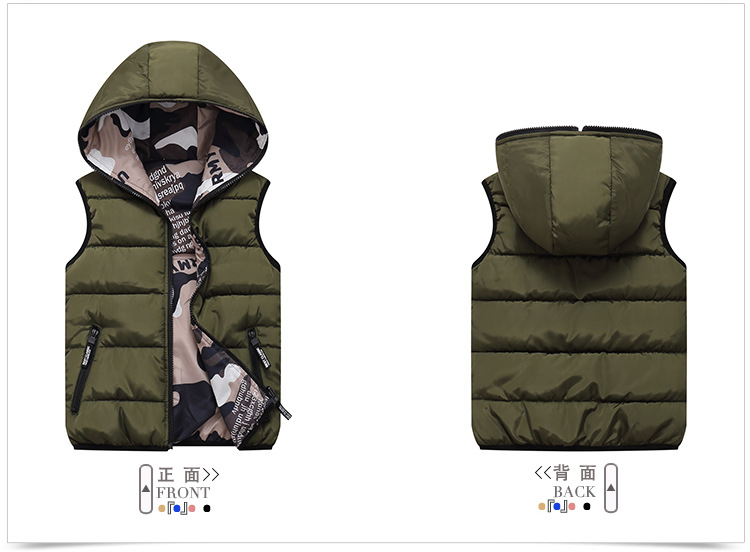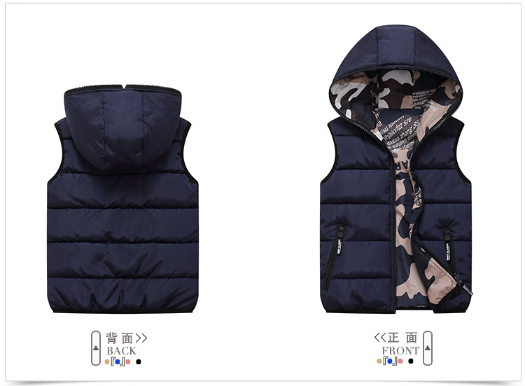 국경을 넘는 공급원에서 제공하는 가을 겨울 신상 두꺼운 보온 양면 착용 가능한 후드가 달린 중대형 아동용 면 조끼, 도매 판매 중스토어 가기