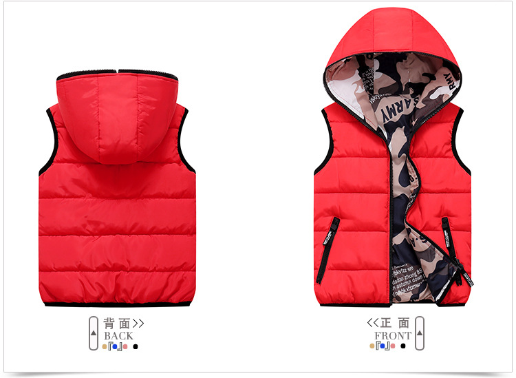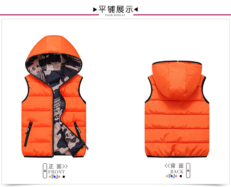 국경을 넘는 공급원에서 제공하는 가을 겨울 신상 두꺼운 보온 양면 착용 가능한 후드가 달린 중대형 아동용 면 조끼, 도매 판매 중