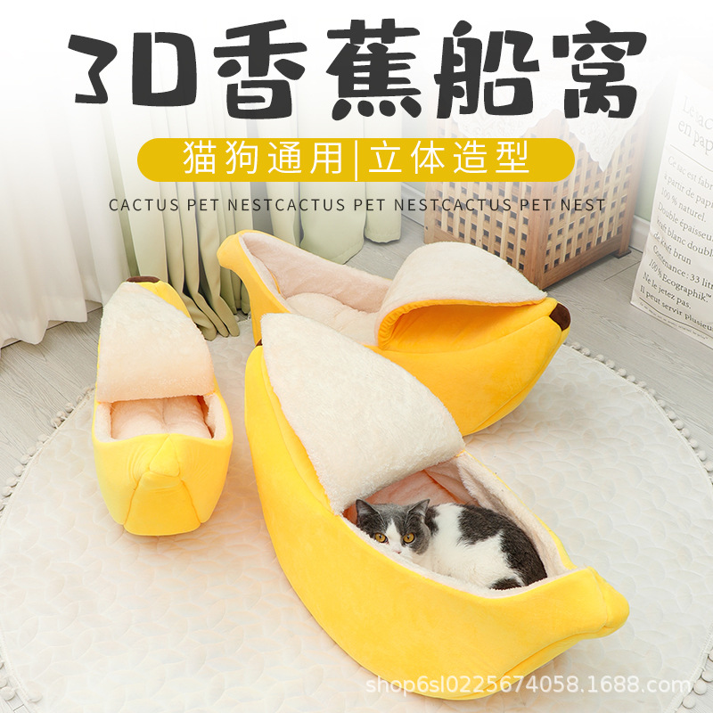 무료 배송 커버가있는 애완 동물 바나나 둥지 여름 새로운 플러시 없음 고양이 둥지 개 둥지 사계절 유니버설 햄스터 잠자는 둥지 매트