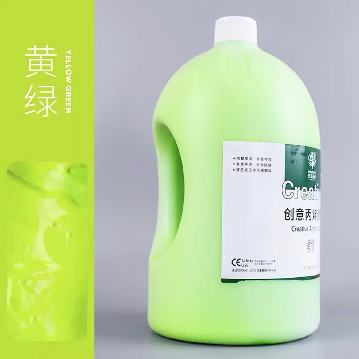 Wencui 2L 아크릴 대형 배럴 페인트 벽 그림 실내 아크릴 그림 흰색 레몬 노란색 큰 병 손으로 그린 방수 페인트
