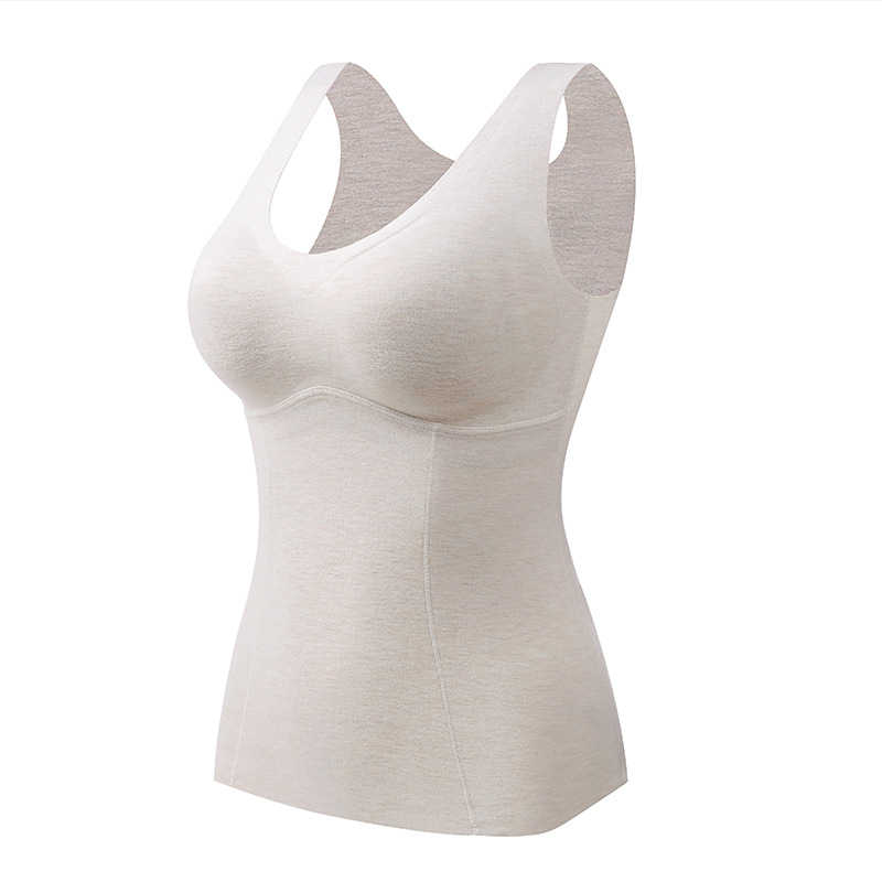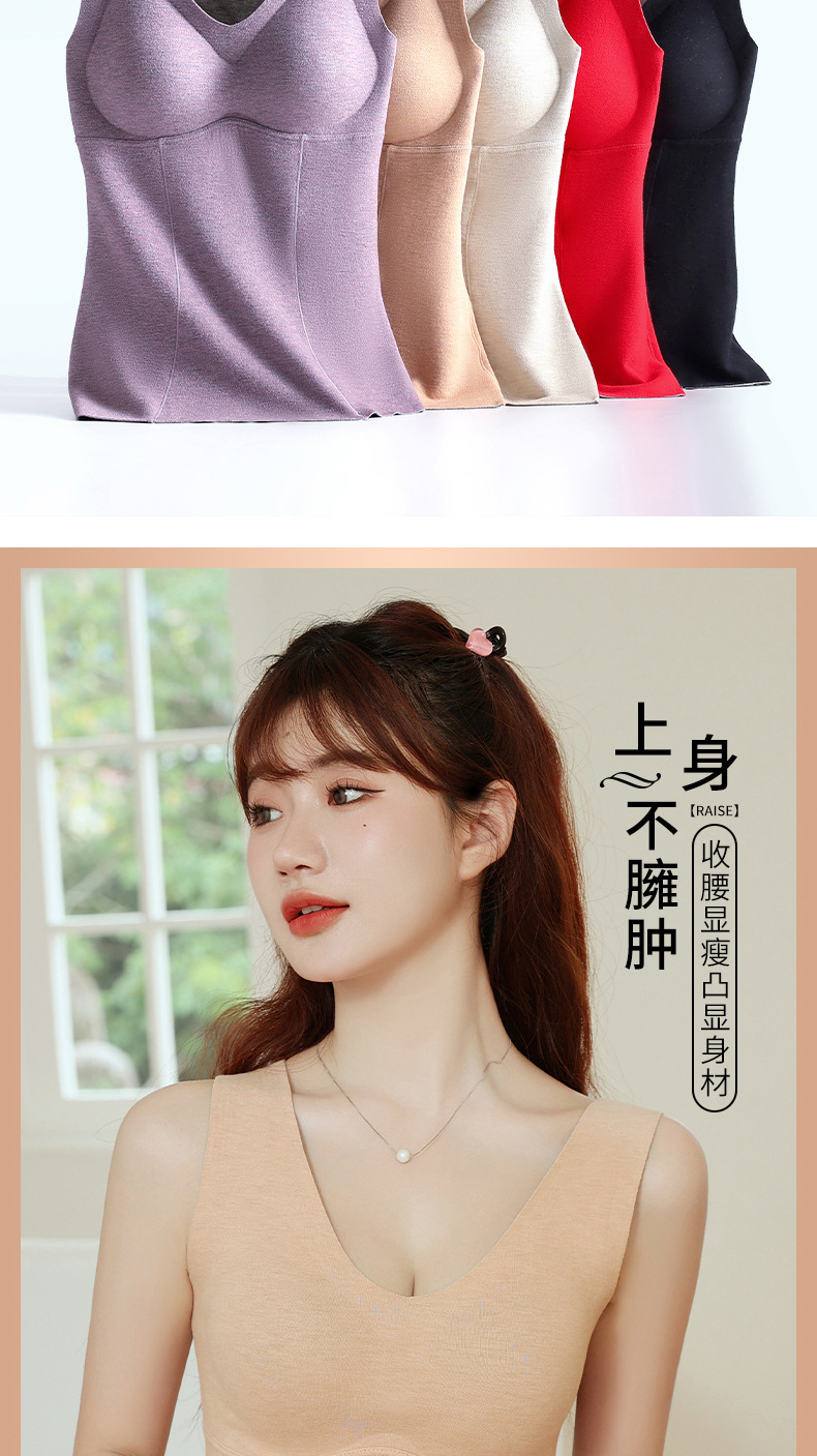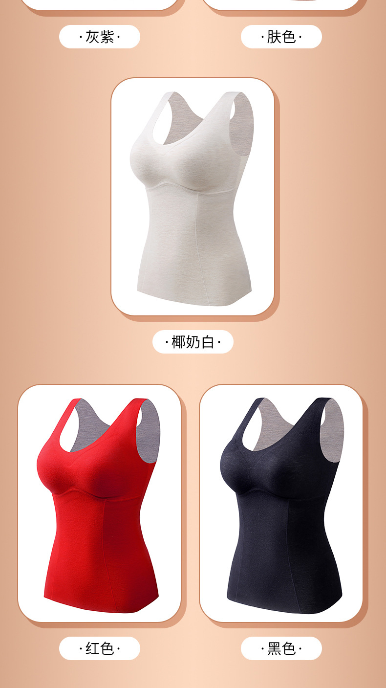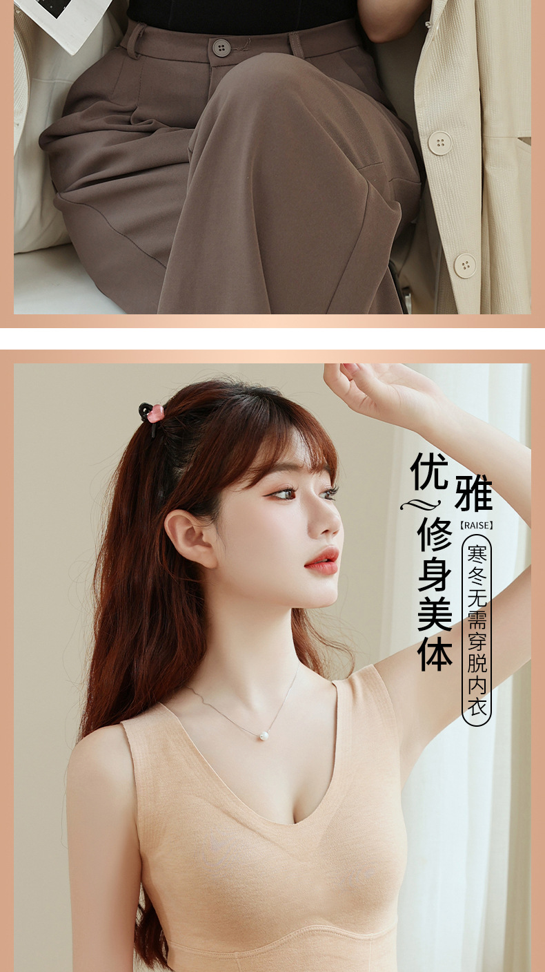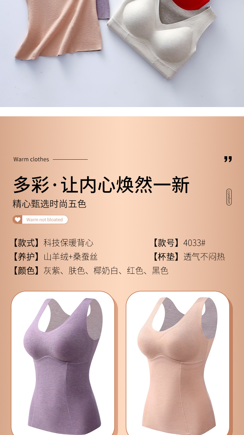 가슴 패드와 벨벳 벨벳 조끼가 있는 여성용 가을 겨울 울 실크 기모 이음매 없는 따뜻한 조끼 속옷스토어 가기
