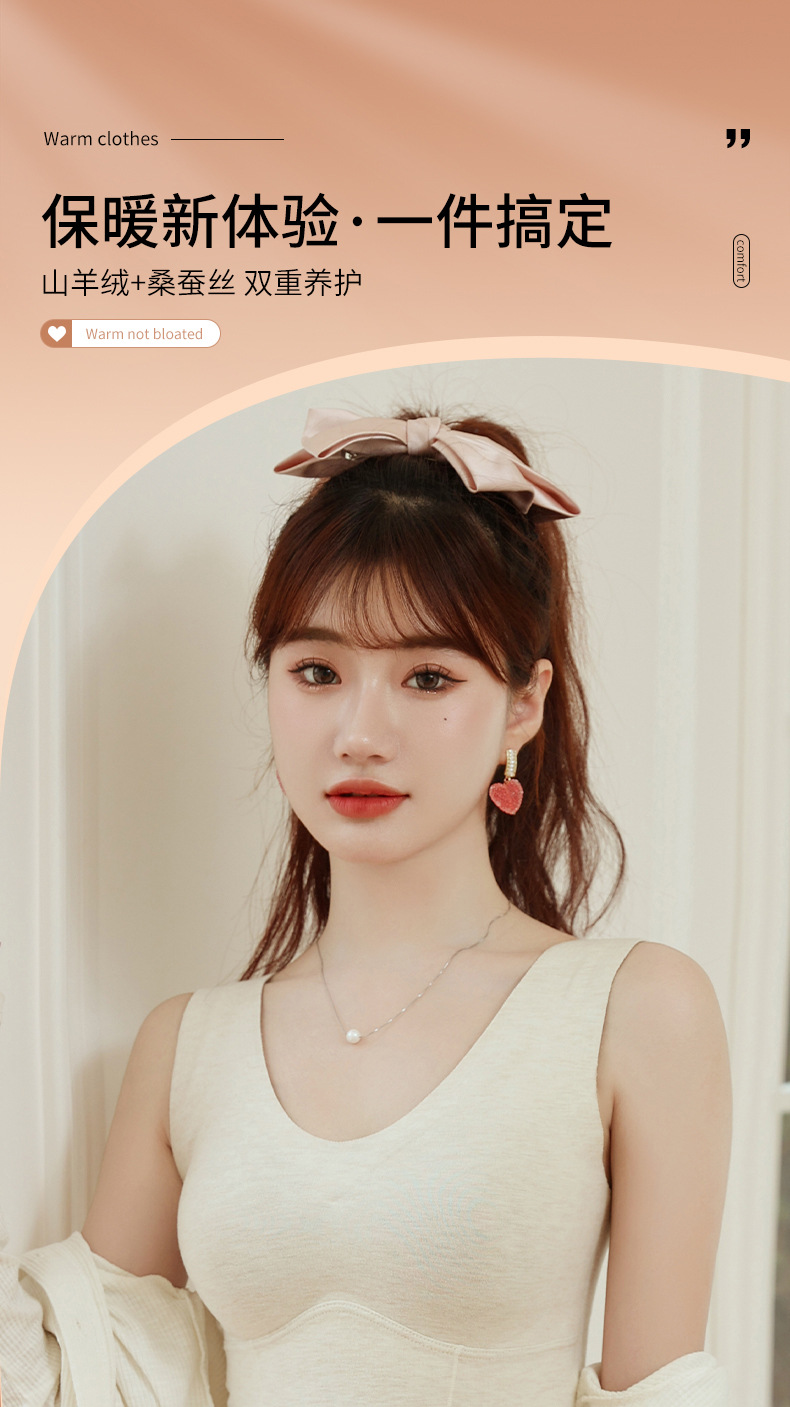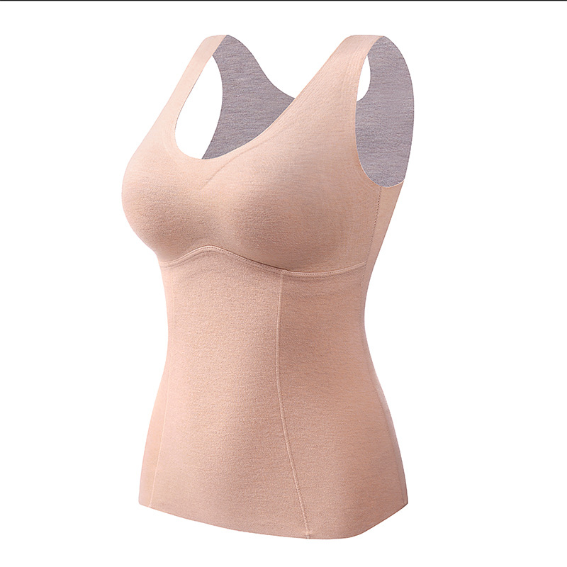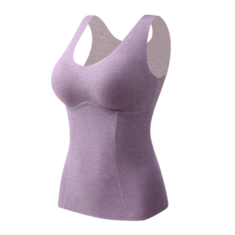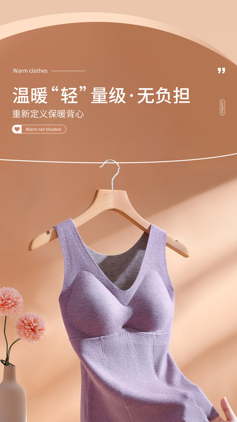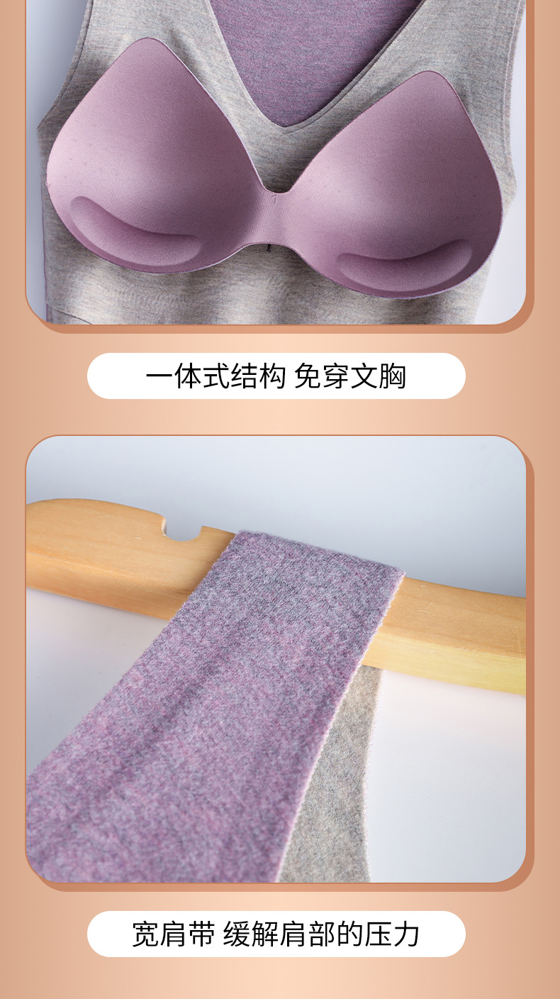 가슴 패드와 벨벳 벨벳 조끼가 있는 여성용 가을 겨울 울 실크 기모 이음매 없는 따뜻한 조끼 속옷스토어 가기
