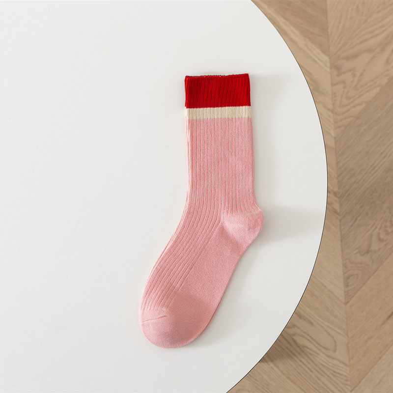 양말 여자의 작은 빨간 책 같은 스타일 rakou 색상 일치 양말 인스 타 그램 유행 새로운 도착 더블 바늘 대학 스타일 면 양말 핑크