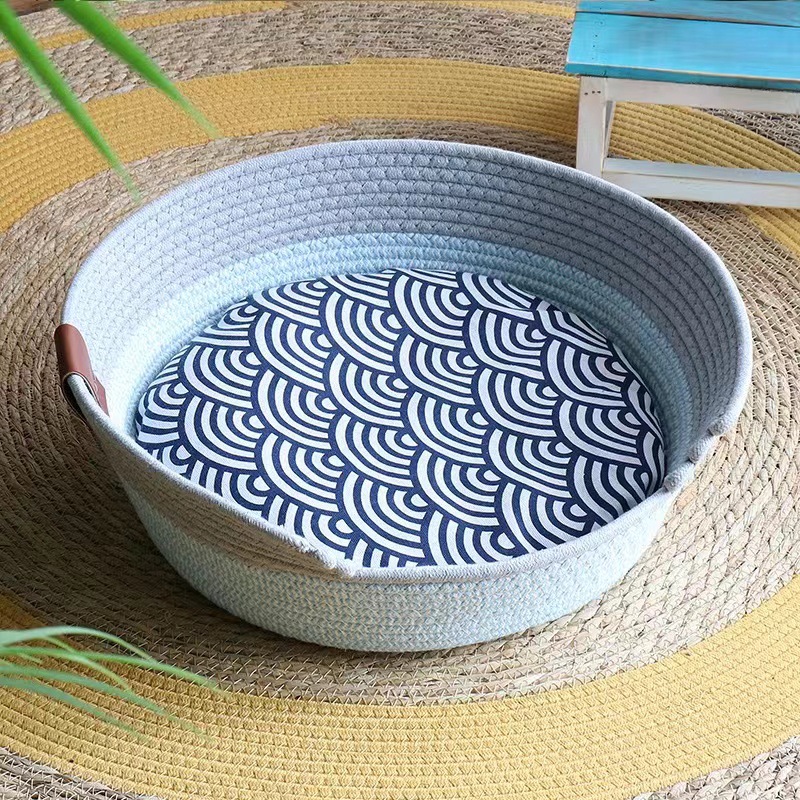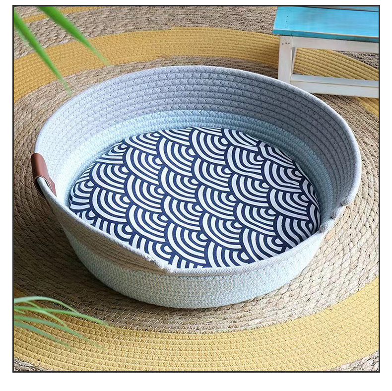 등나무 고양이 둥지 사계절 유니버설 일본식 인터넷 연예인 짠 면 패드 따뜻한 애완 동물 잠자는 개 둥지 침대 실내 둥근 둥지