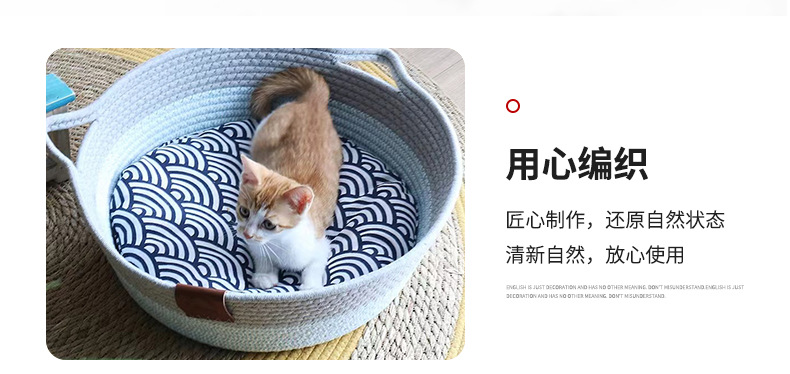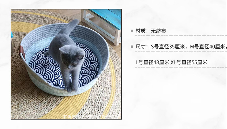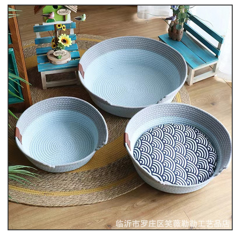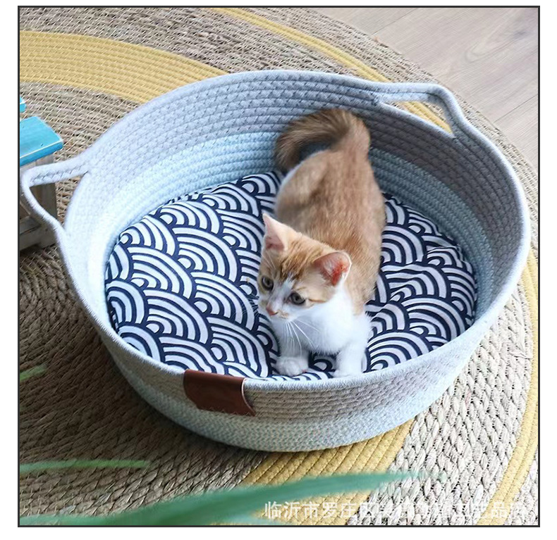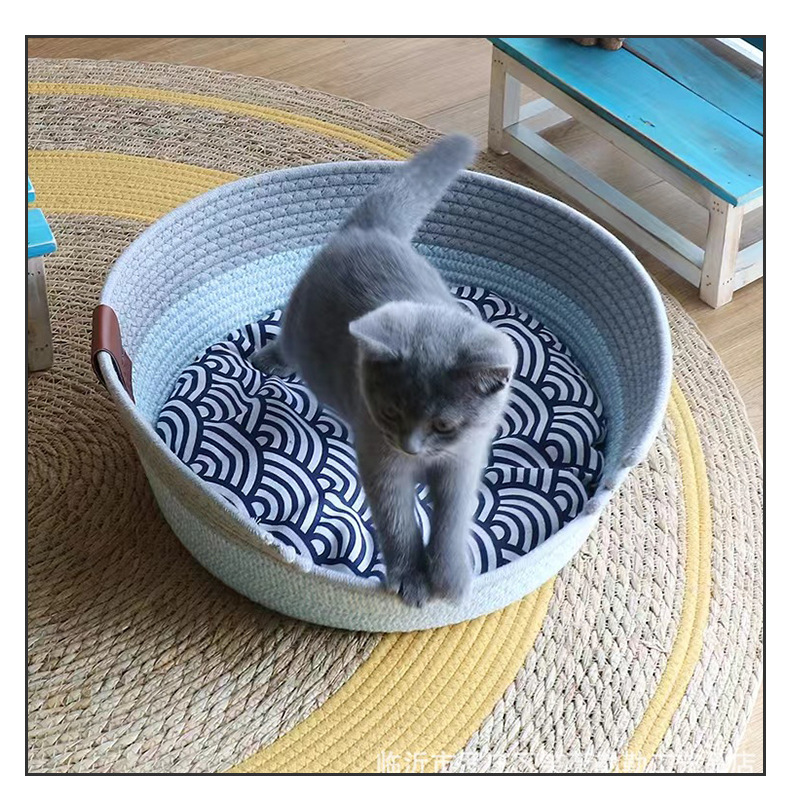 등나무 고양이 둥지 사계절 유니버설 일본식 인터넷 연예인 짠 면 패드 따뜻한 애완 동물 잠자는 개 둥지 침대 실내 둥근 둥지스토어 가기