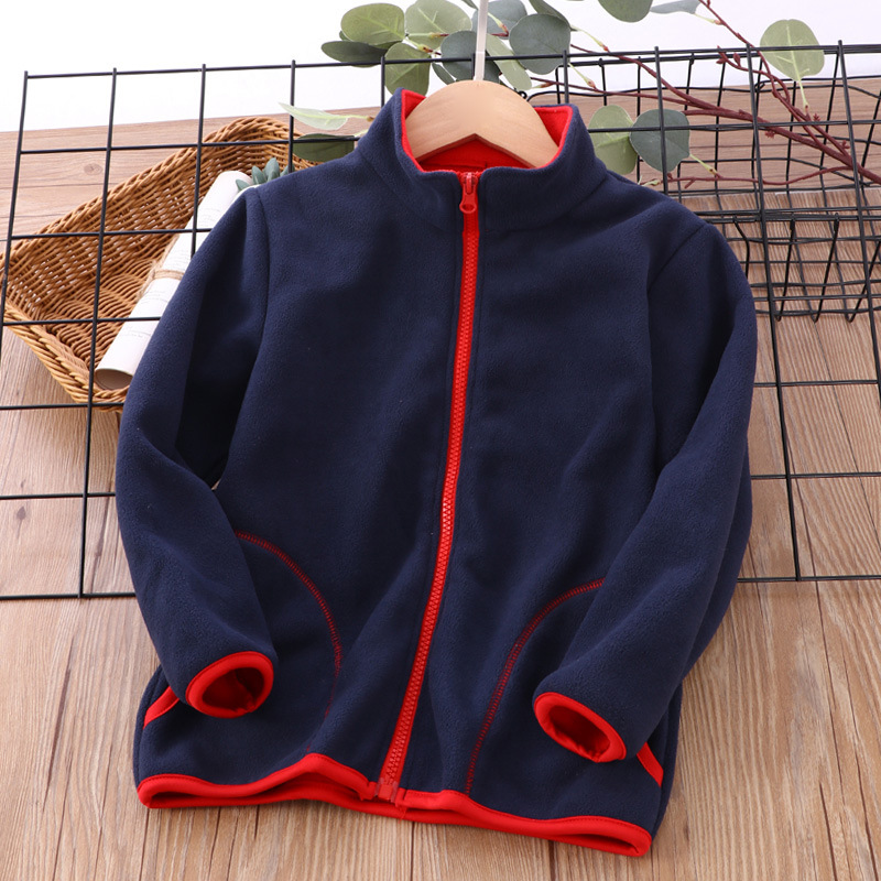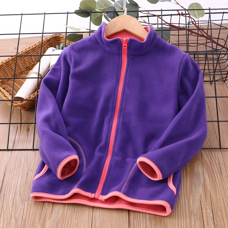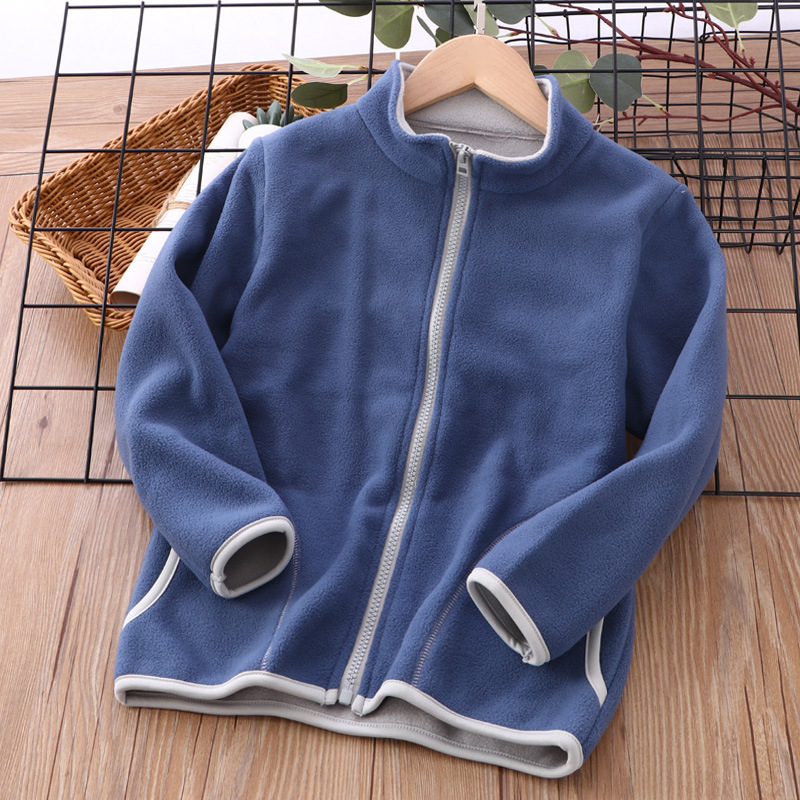 어린 이용 가을 코트 기모 두꺼운 스탠드 칼라 소년 소녀 양면 폴라 플리스 코트 새로운 원피스 배달