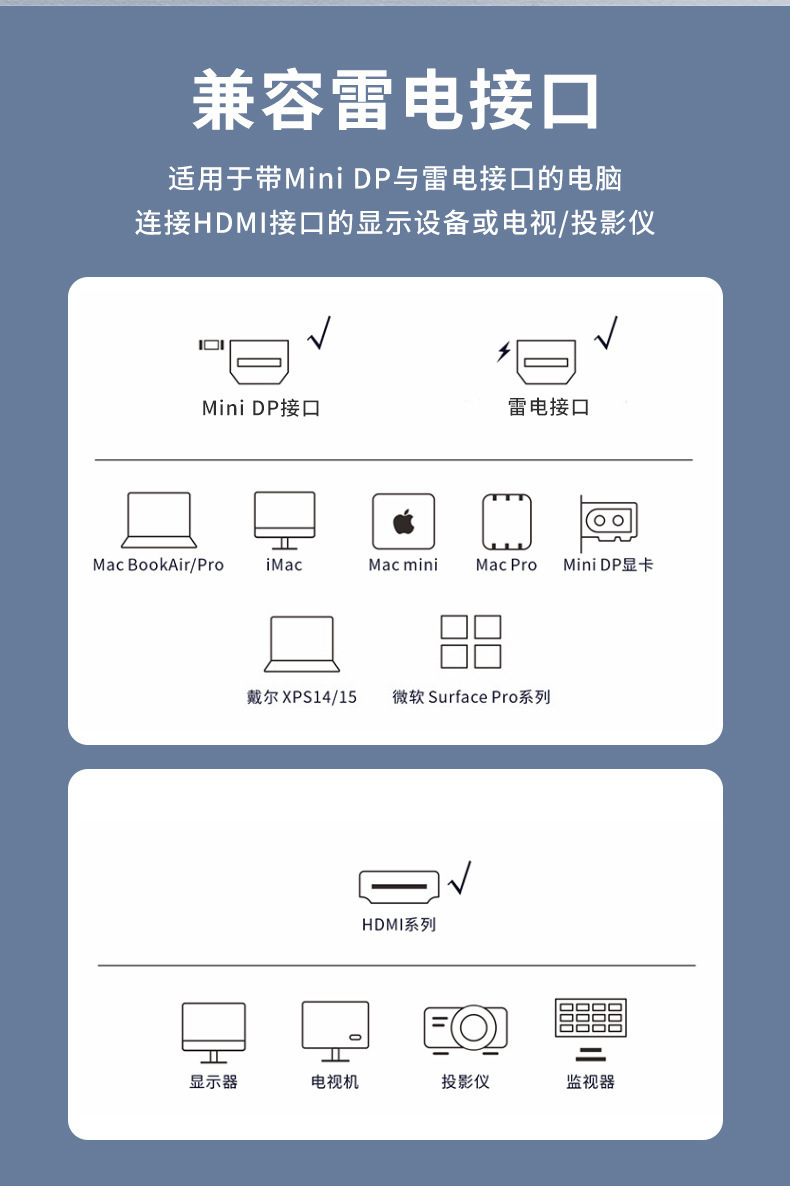 兼容Mini DP接口设备和HDMI显示设备
