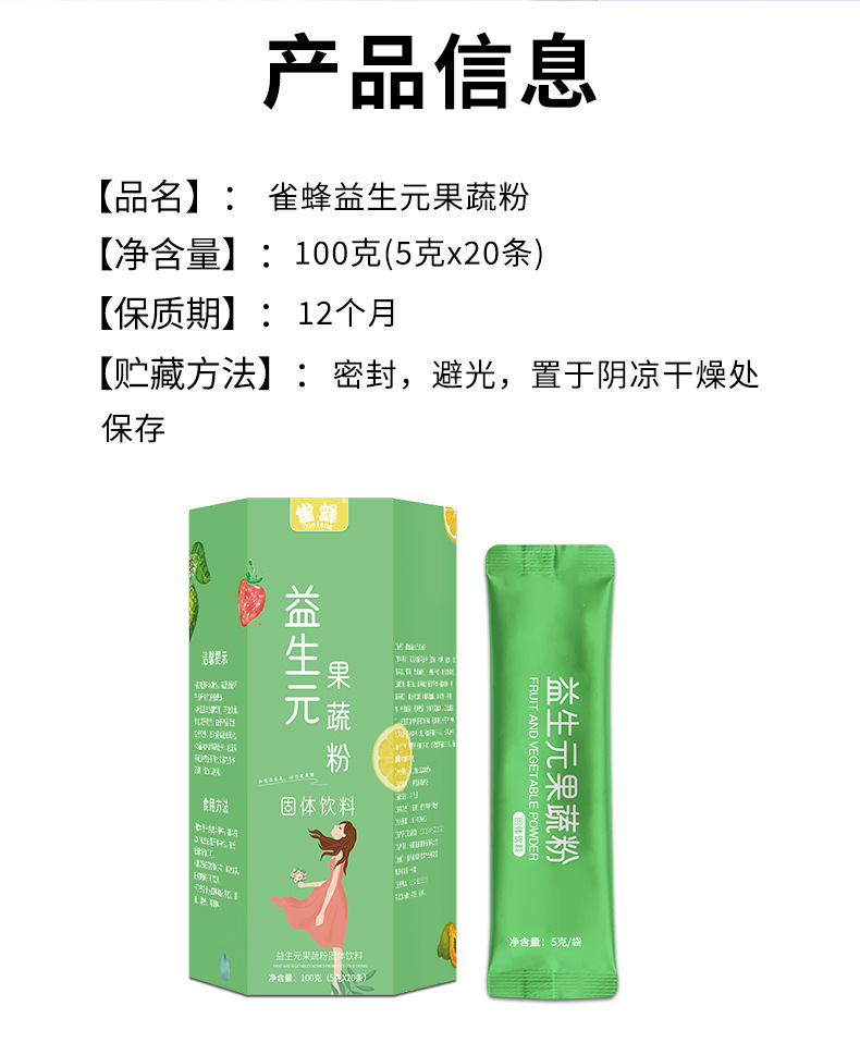 • 가벼운 곡물 멀티 프리 바이오 틱 과일 및 야채 파우더 (5G * 20/상자)