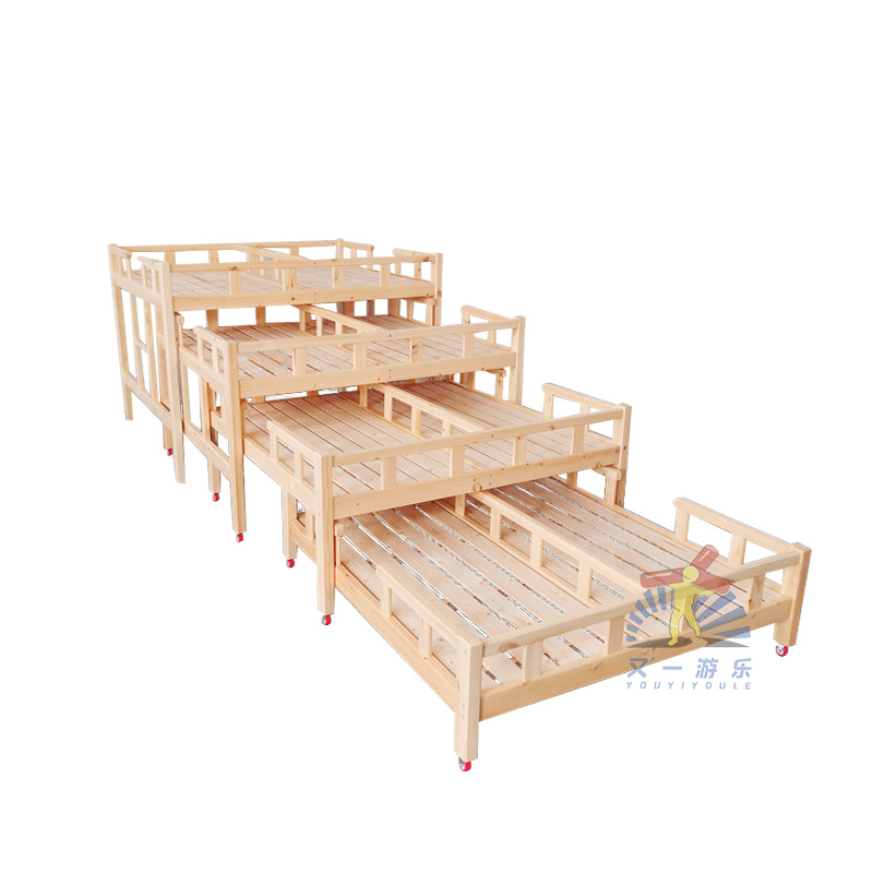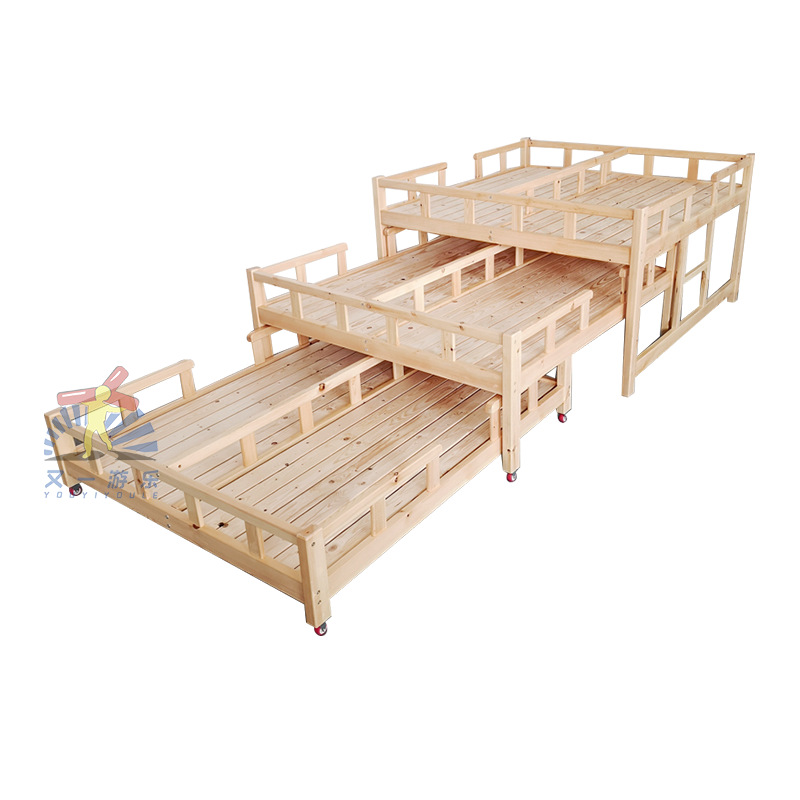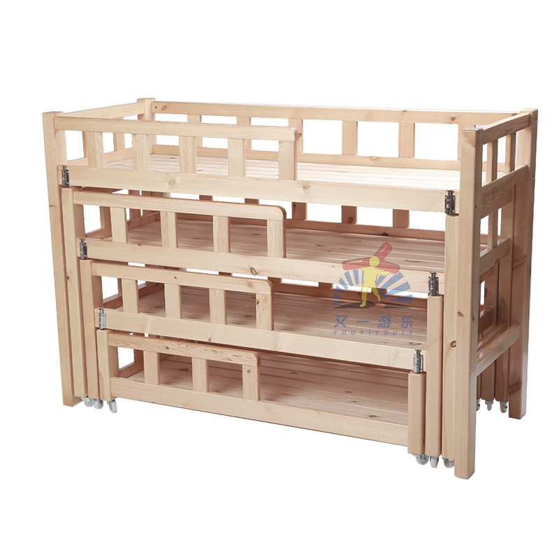 유아교육원용 접이식 소형 침대, 어린이용 원목 가드레일 낮잠 침대, 유아교육용 낮잠 침대, 다층형 슬라이딩 이층 침대