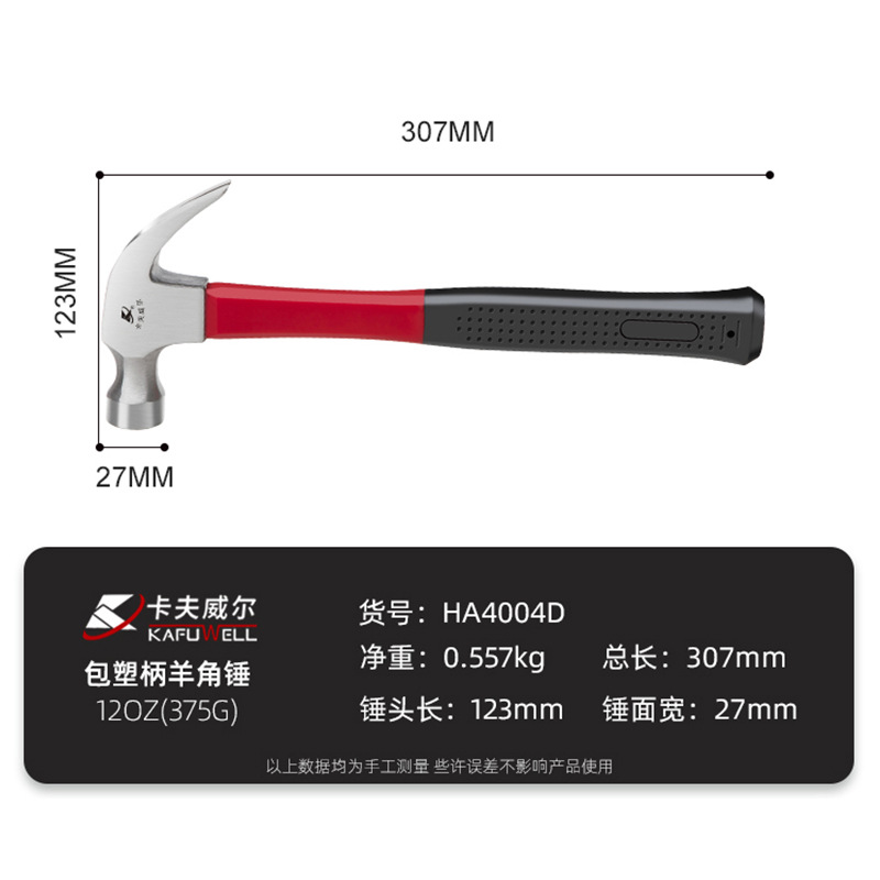 • 플라스틱 손잡이 발톱 망치 "12oz(375g)" HA4004D