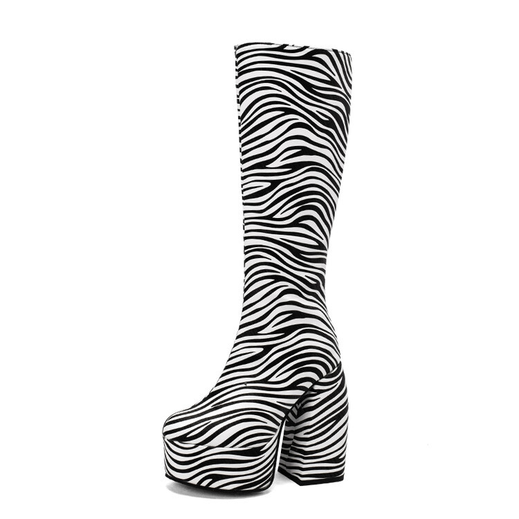 Wish 크로스 국경 대외 무역 플러스 사이즈 여성 부츠 T 너무 catwalk 두꺼운 방수 플랫폼 두꺼운 뒤꿈치 높은 부츠 얼룩말 패턴스토어 가기