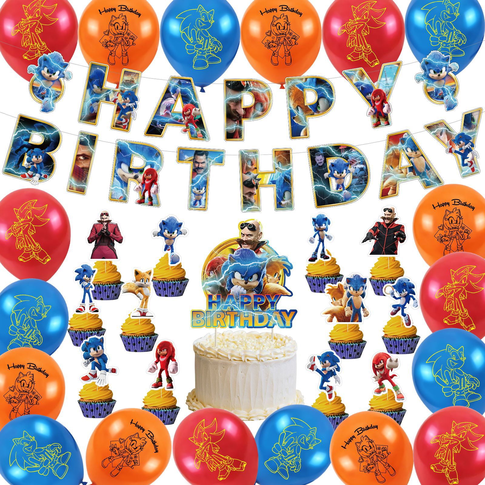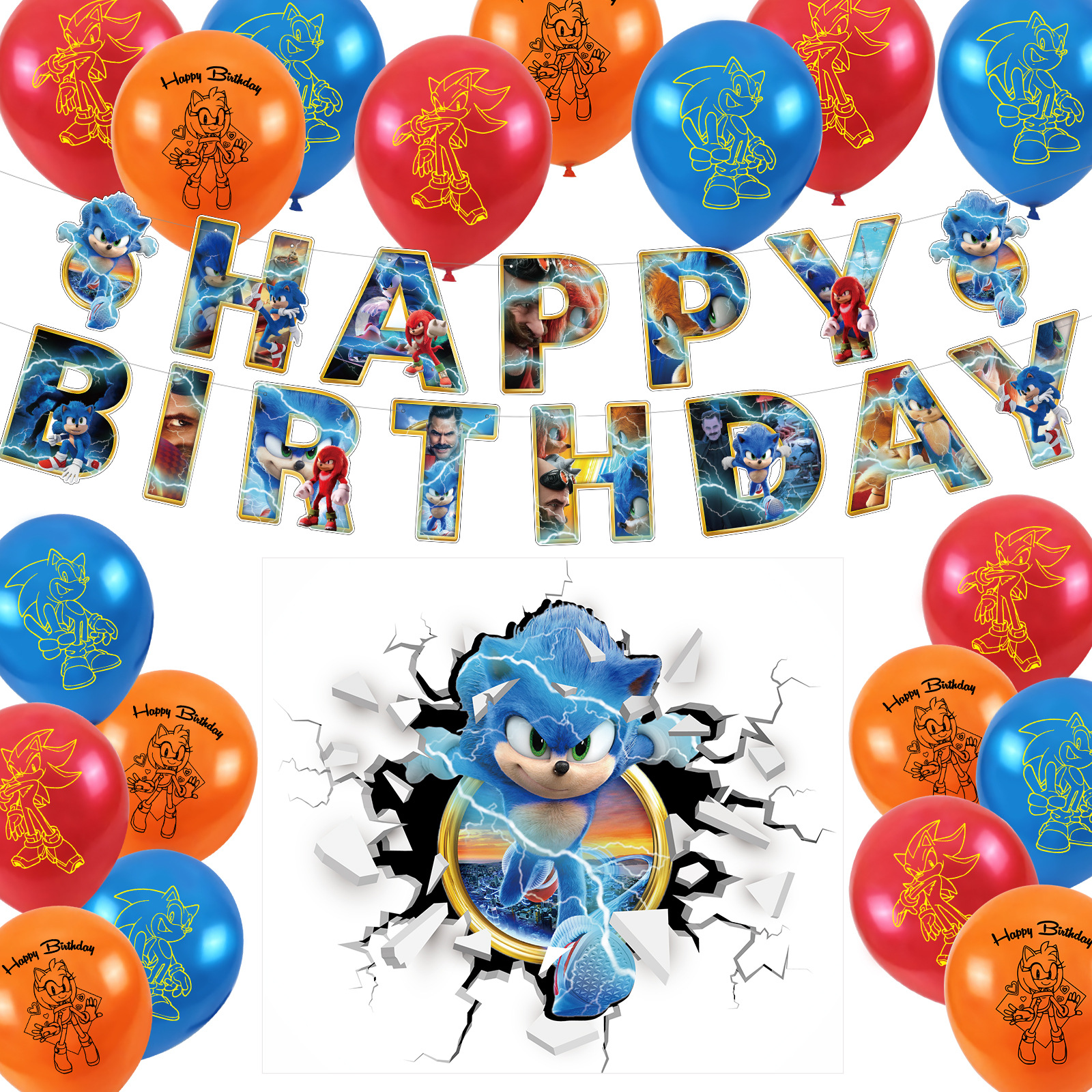 套装3:1条字母纸旗+2个索尼克铝膜+18个乳胶气球