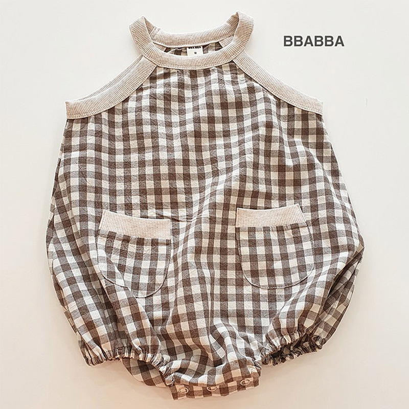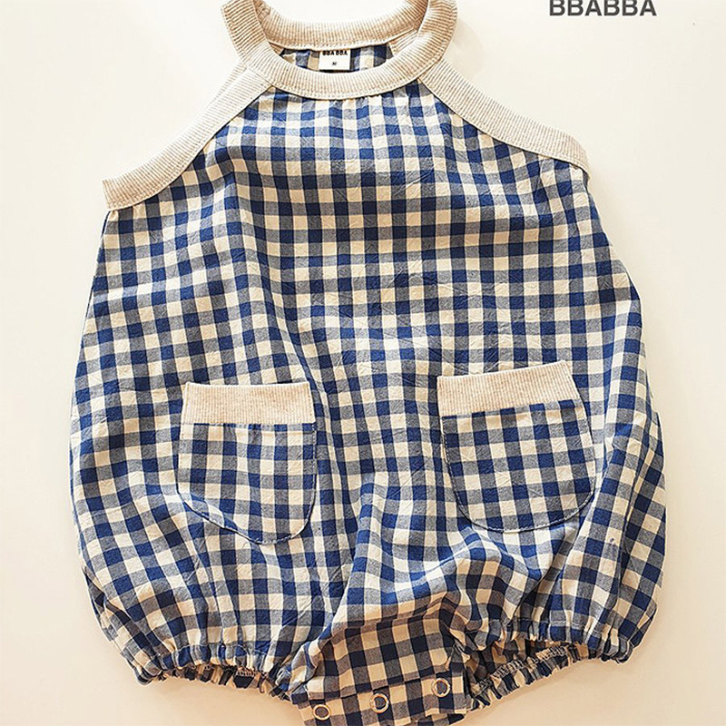 한국 스타일의 여름 새로운 도착 격자 무늬 목 매달려 슬링 하퍼 한국 유아 양동이 옷 삼각형 면 등반 세트스토어 가기