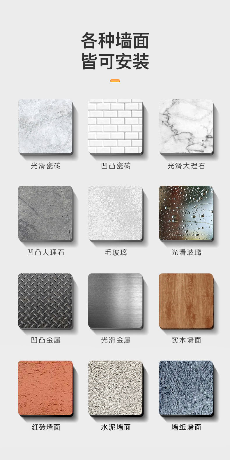 下单注意:仅光滑墙面可免打孔安装,非光滑墙面需要打孔安装,介意勿拍