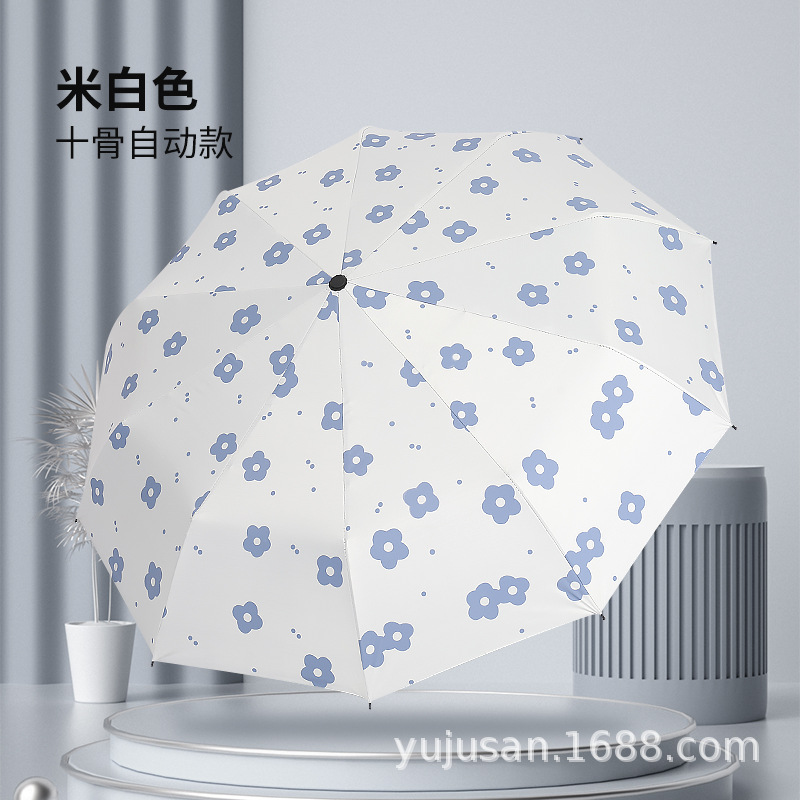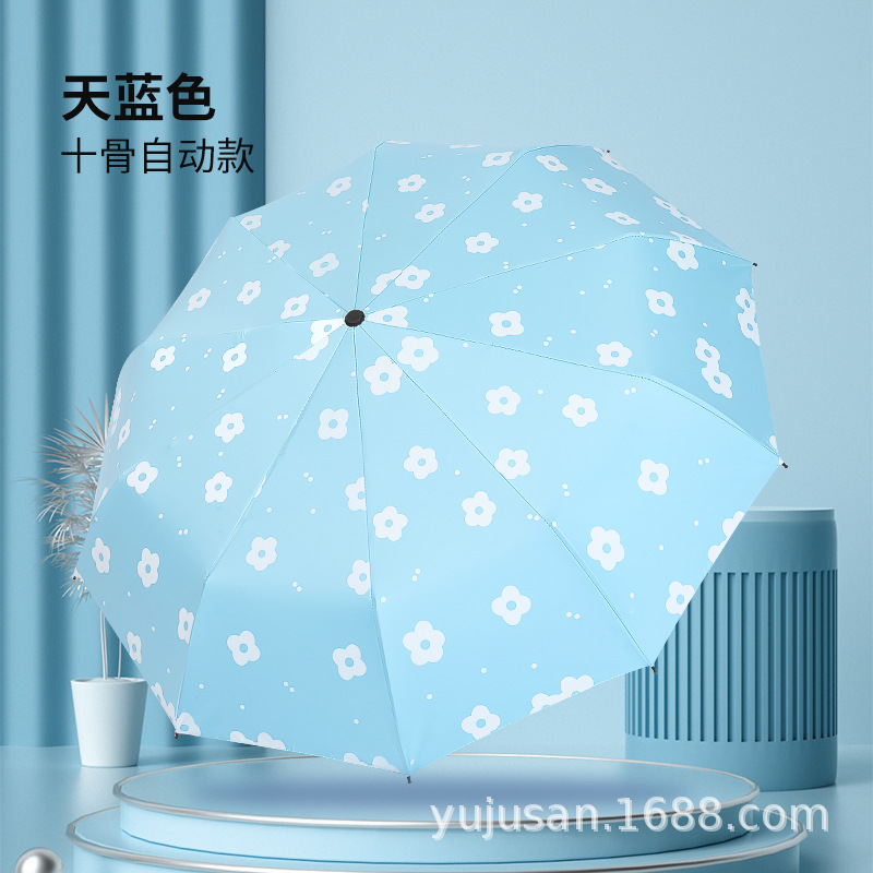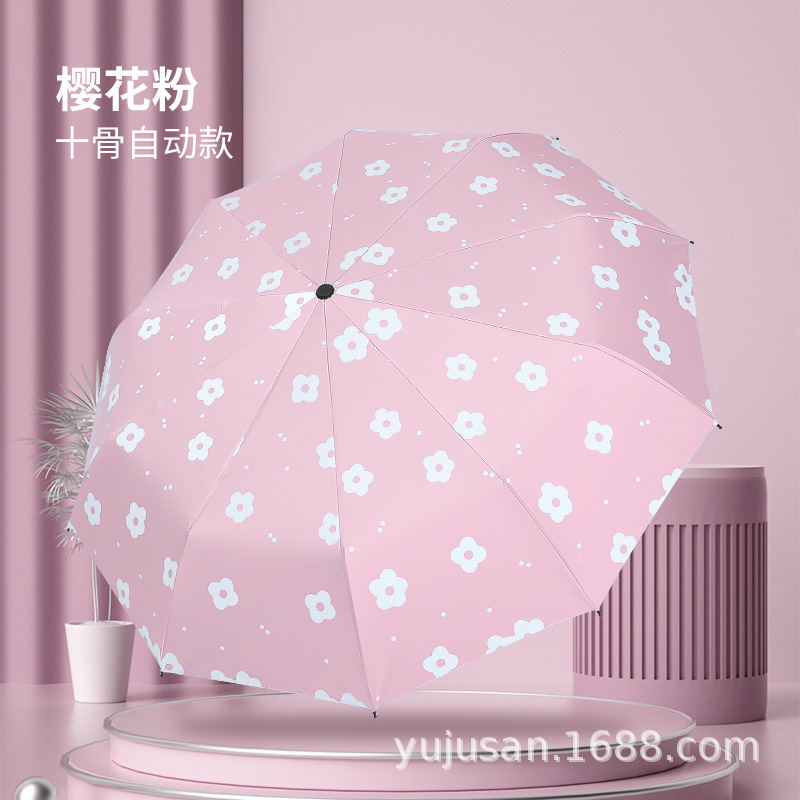 완전 자동 꽃 우산 여성용 바람 맑은 비 이중 사용 태양 우산 차양 3 배 검정 고무 자외선 차단제 UV스토어 가기