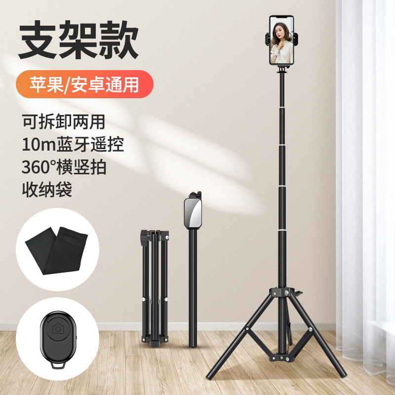 휴대 전화 셀카 스틱 범용 다기능 연장 여행 블루투스 사진 라이브 휴대용 바닥 분리형 삼각대스토어 가기