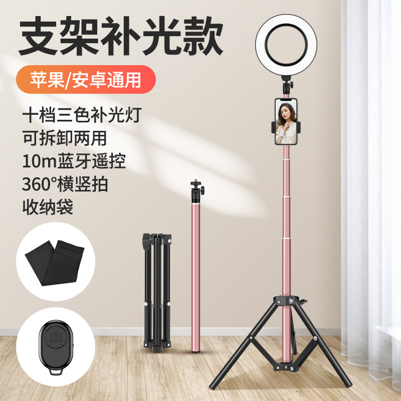 • 175cm 로즈 골드 [업그레이드 브라켓 라이트 보충제] 분리형 삼각대 + 라이트 보충제 + 추가 클립 + 셀카 + 보관 가방