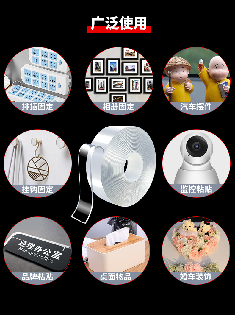 국경을 넘는 아크릴 나노 접착제 강력 접착 투명 무흔적 양면 테이프 탈부착 가능한 후크 테이프 나노 무흔적 접착제