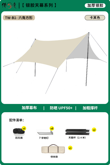 실버 코팅 캐노피 텐트 야외 피크닉 캠핑 장비 공원 관광 두꺼운 육각형 자외선 차단제 차양