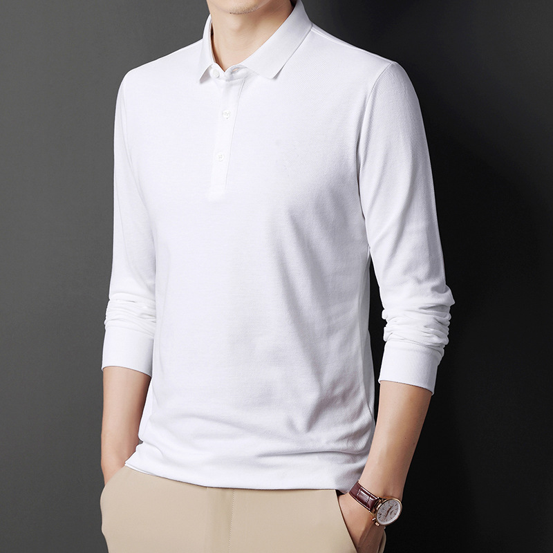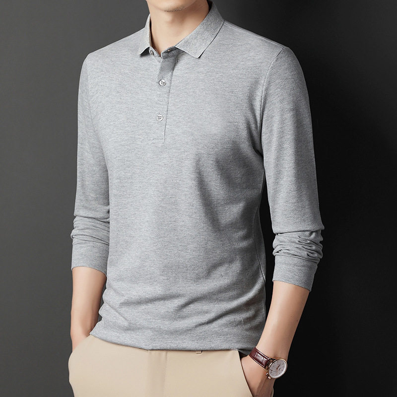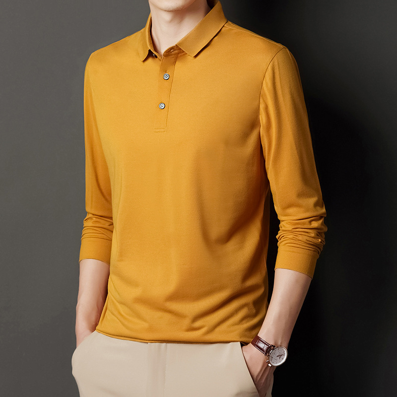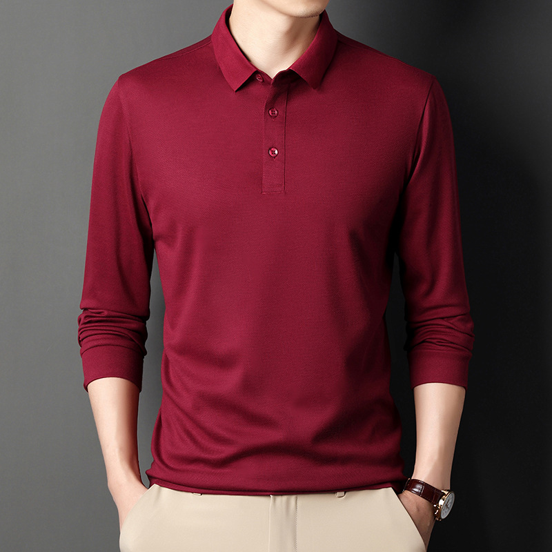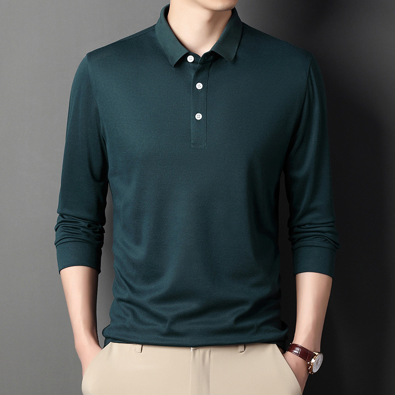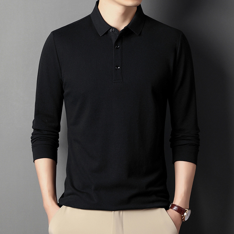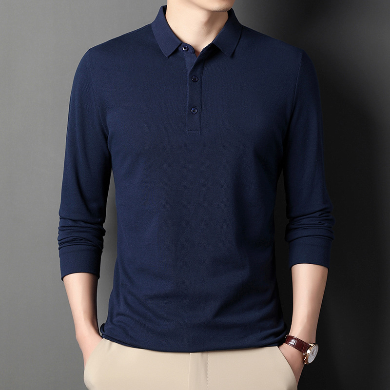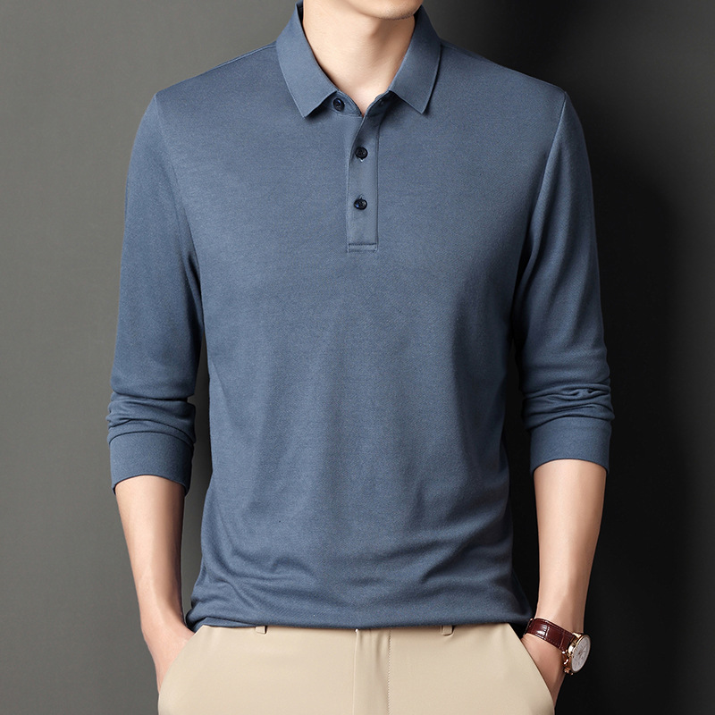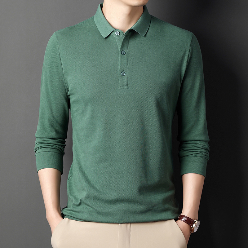 미시마 스트레이트 헤어 봄과 가을 남성용 긴팔 티셔츠 중년 캐주얼 얇은 라펠 단색 폴로 셔츠 남성 상의