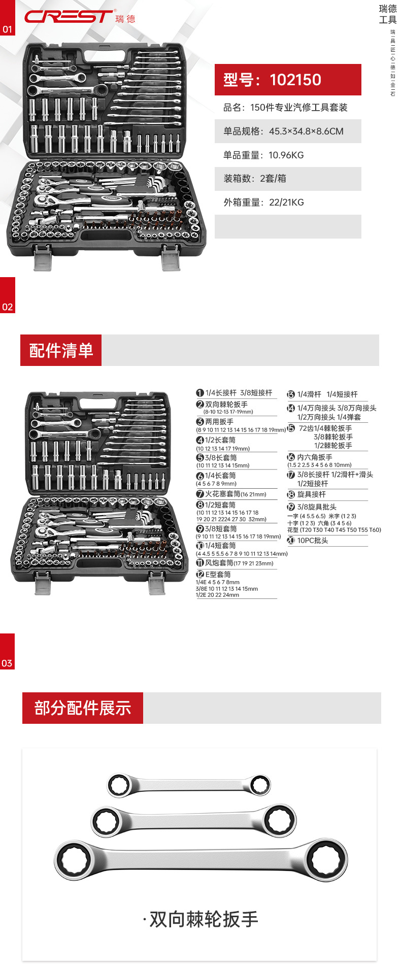 빨간 소켓 렌치 자동차 수리 조합 자동 수리 150 개 자동차 수리 다기능 하드웨어 도구 상자 세트스토어 가기