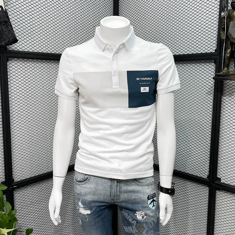 여름 남성용 라펠 반팔 폴로 셔츠 순면 트렌디 프린트 청소년 비즈니스 올매치 반팔 하의 폴 셔츠스토어 가기
