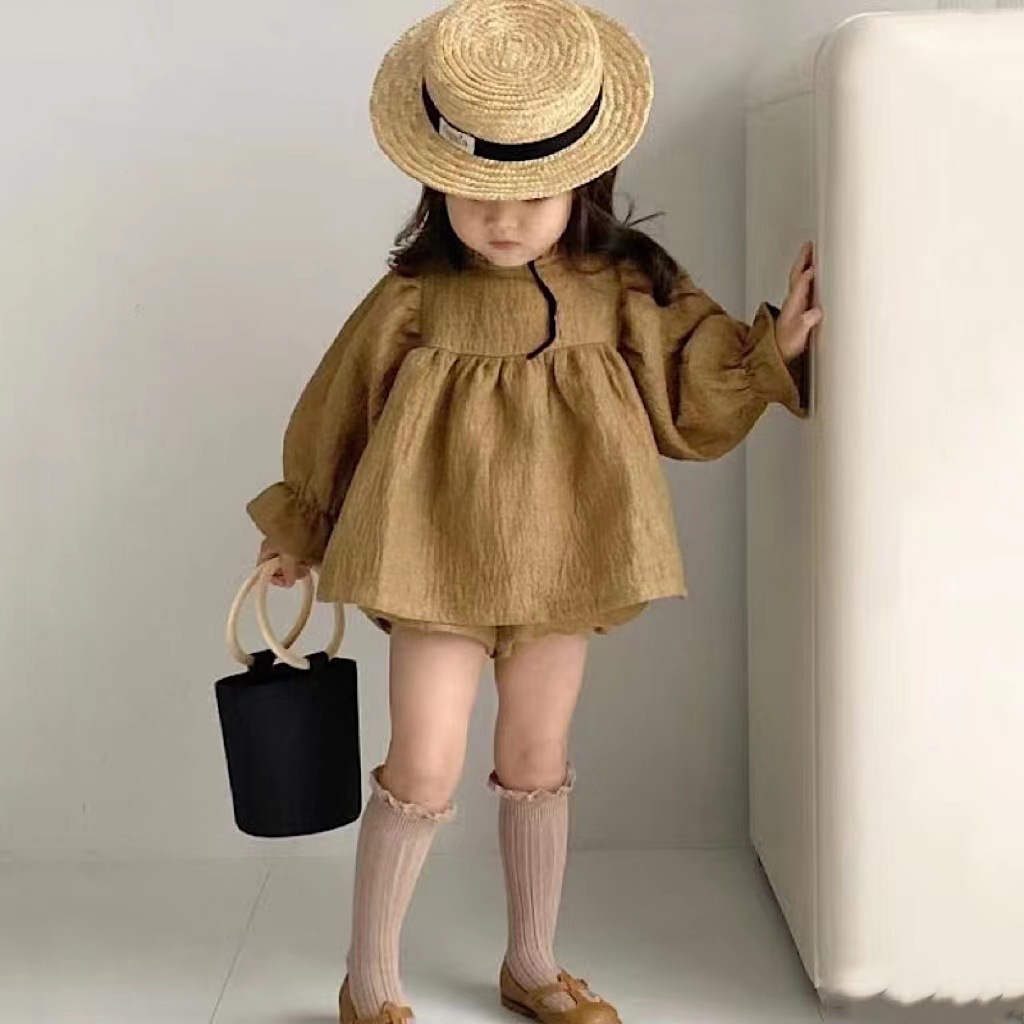 22 가을과 겨울 New Girls 두꺼운 린넨 세트 여성의 보물 외국 스타일 한국 긴팔 인형 셔츠 면 바지 2 종 세트