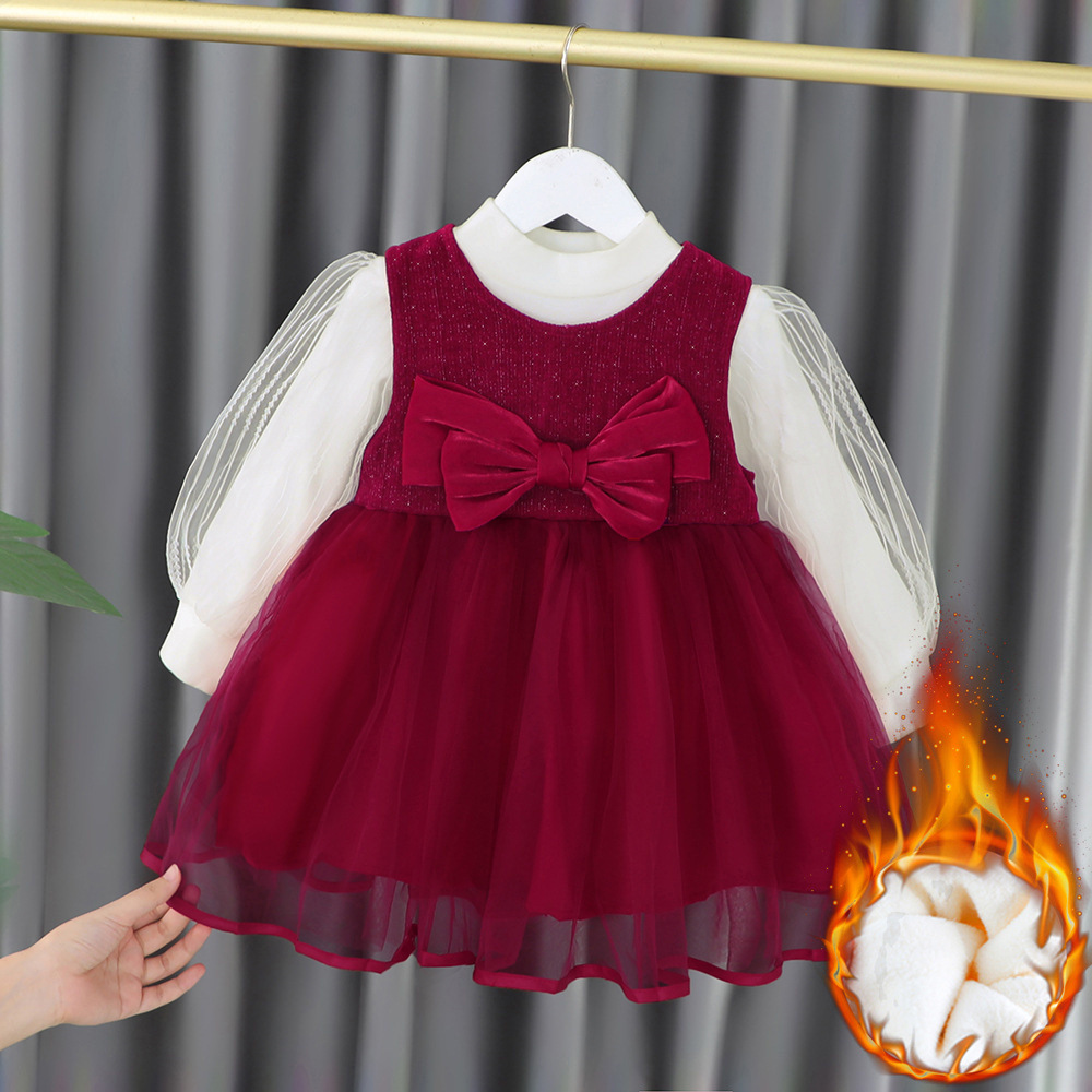 여아 트렌디 한 공주 아동복 봄과 가을 2 0-1-4 세 소녀를위한 서양 스타일 모래 슬리브 스커트 캐주얼 봄과 가을 머리