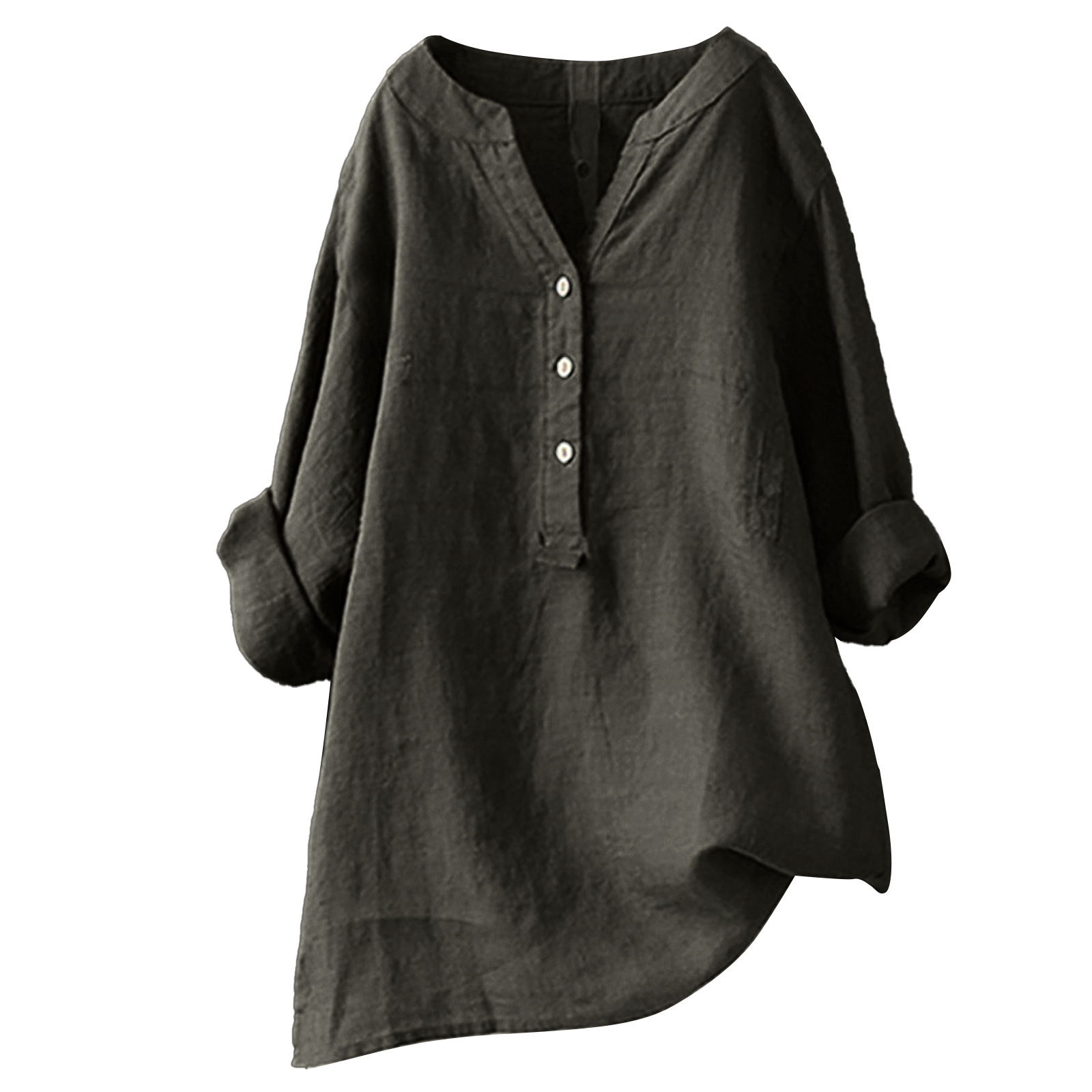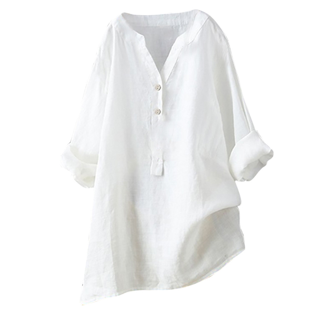 2022 재고 이베이 아마존 AliExpress 유럽 및 미국 느슨한 클리어 칼라 버튼 긴 소매 면 및 린넨 탑 여성스토어 가기