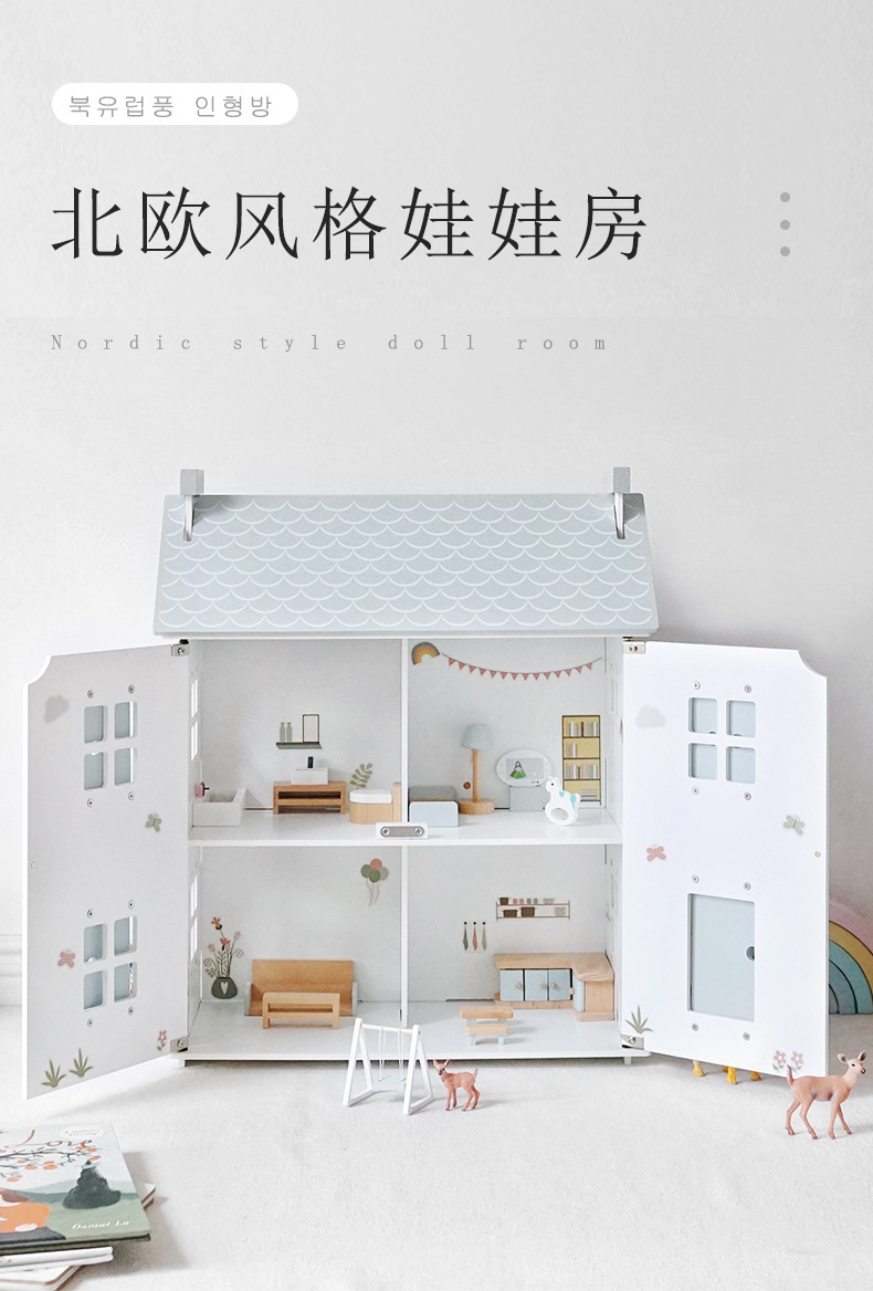 북유럽 인 인형 집 어린이 놀이 집 시뮬레이션 빌라 공주 인형 집 여자 놀이 집 나무 집스토어 가기