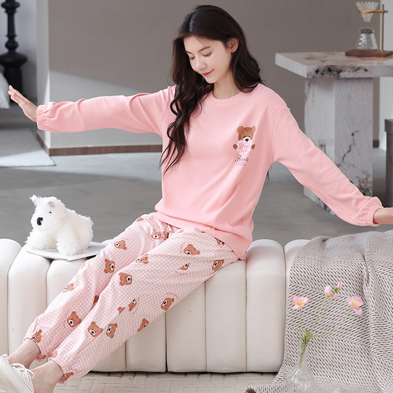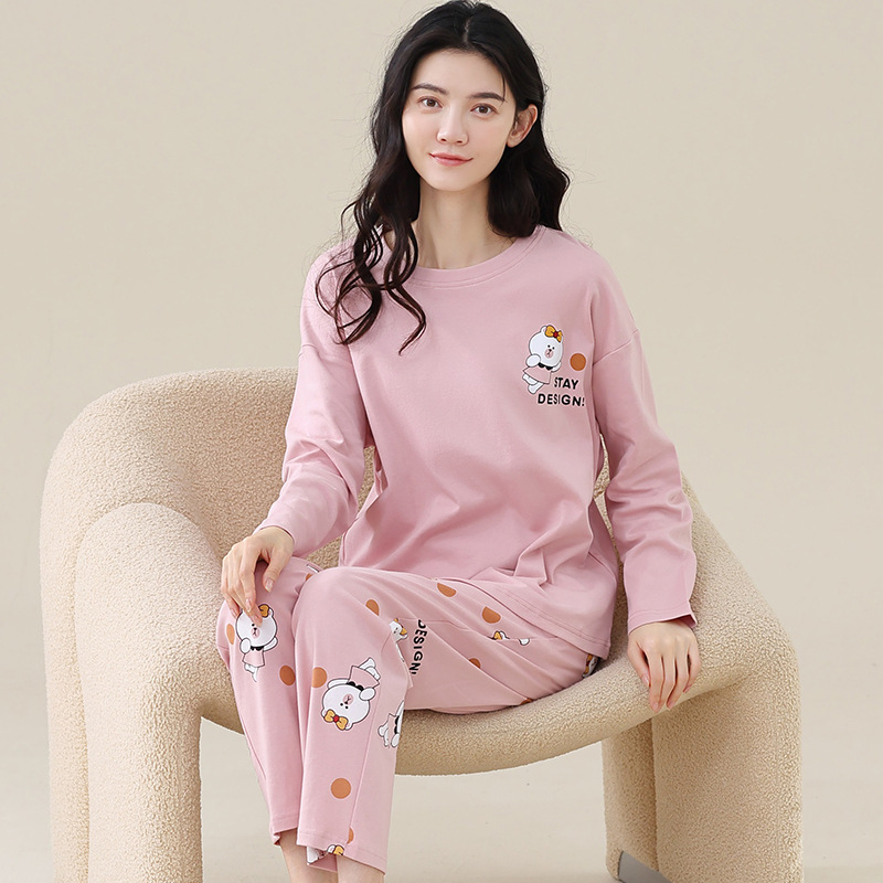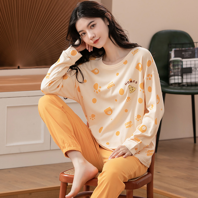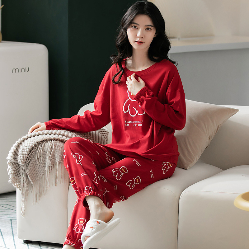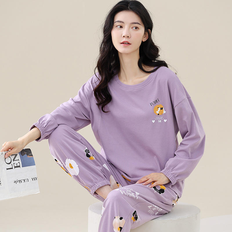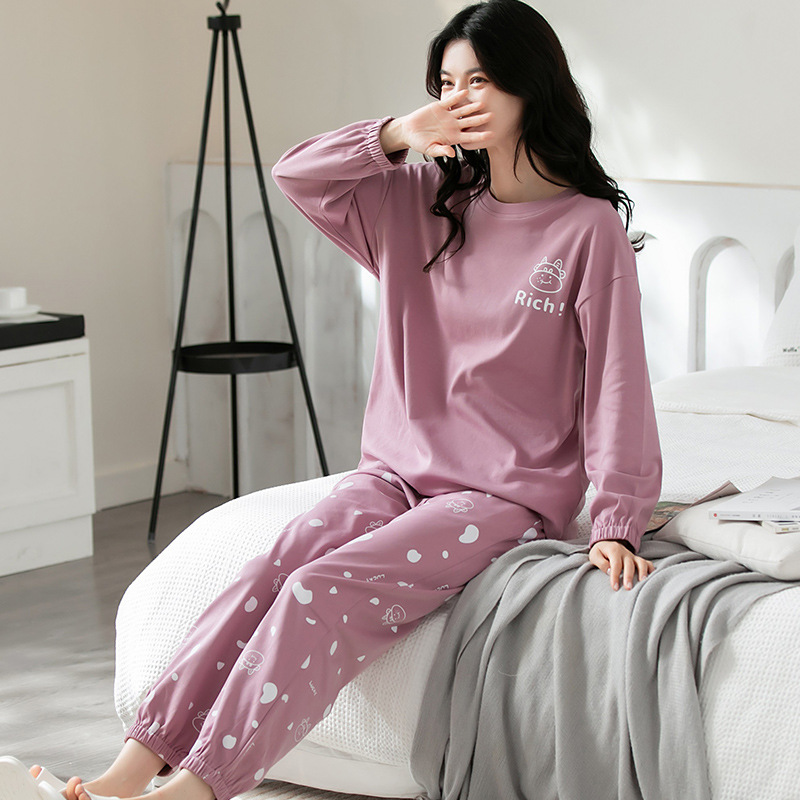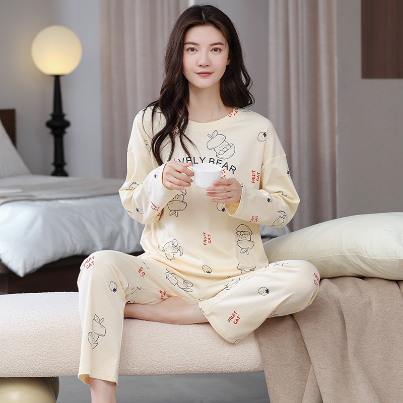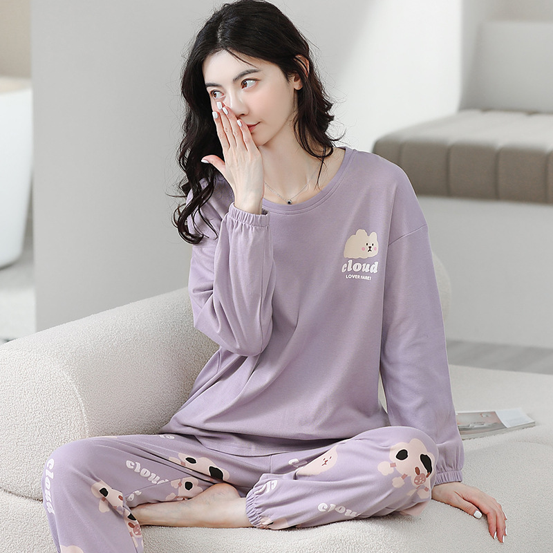 새로운 Aifenteng 잠옷 여성용 봄과 가을 면 긴 소매 긴 바지 가을과 겨울 면 겉옷 캐주얼 홈웨어 커버스토어 가기