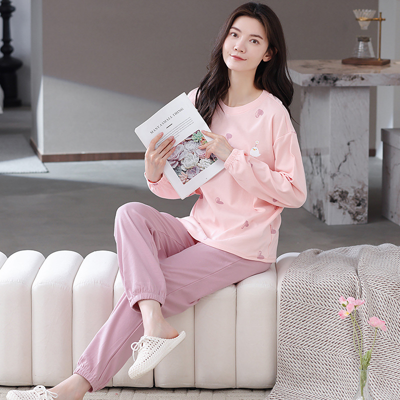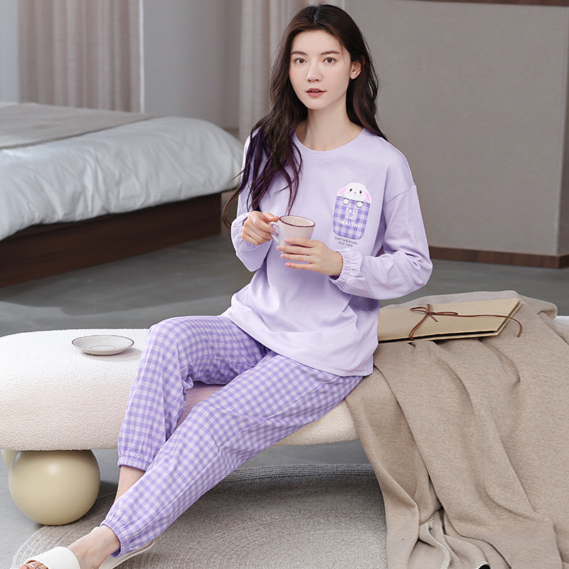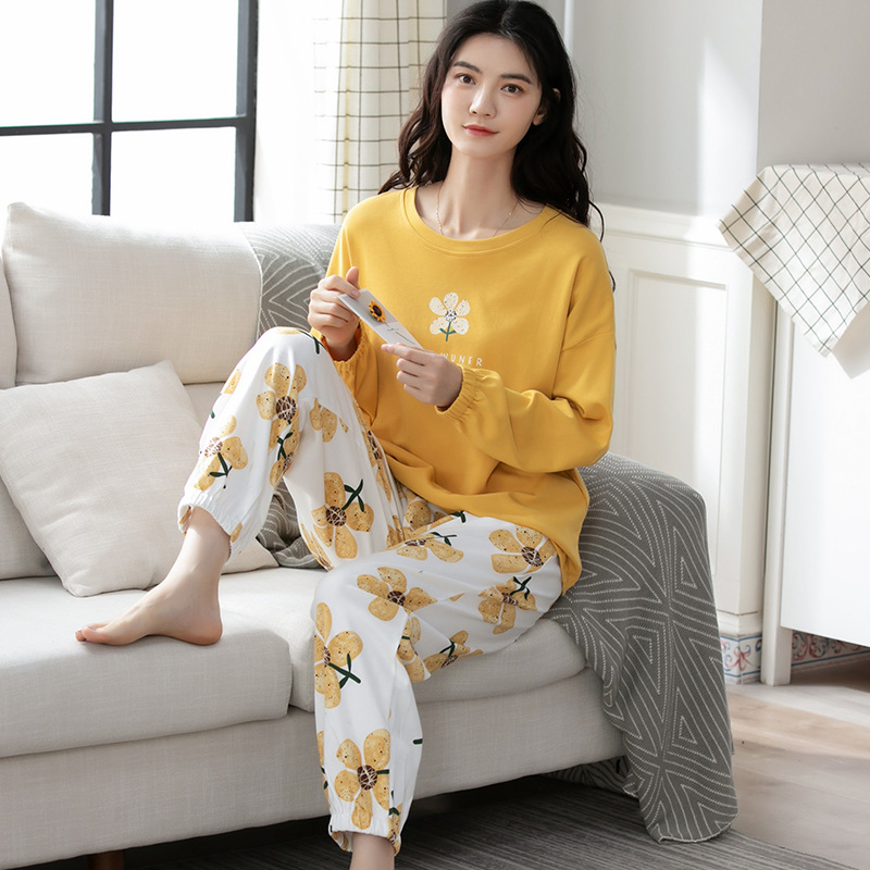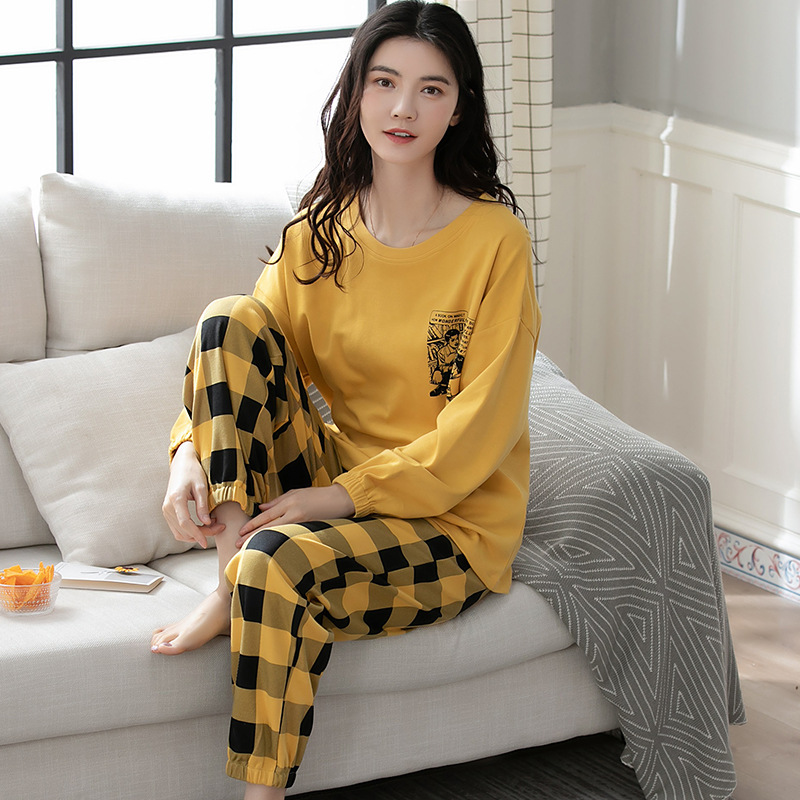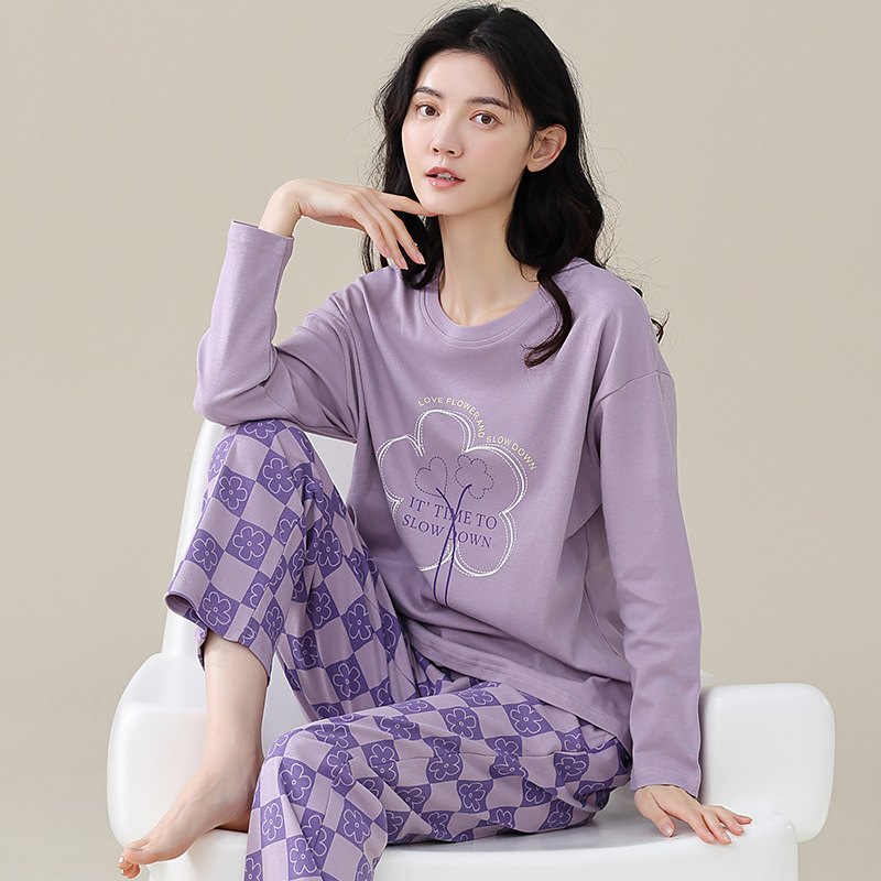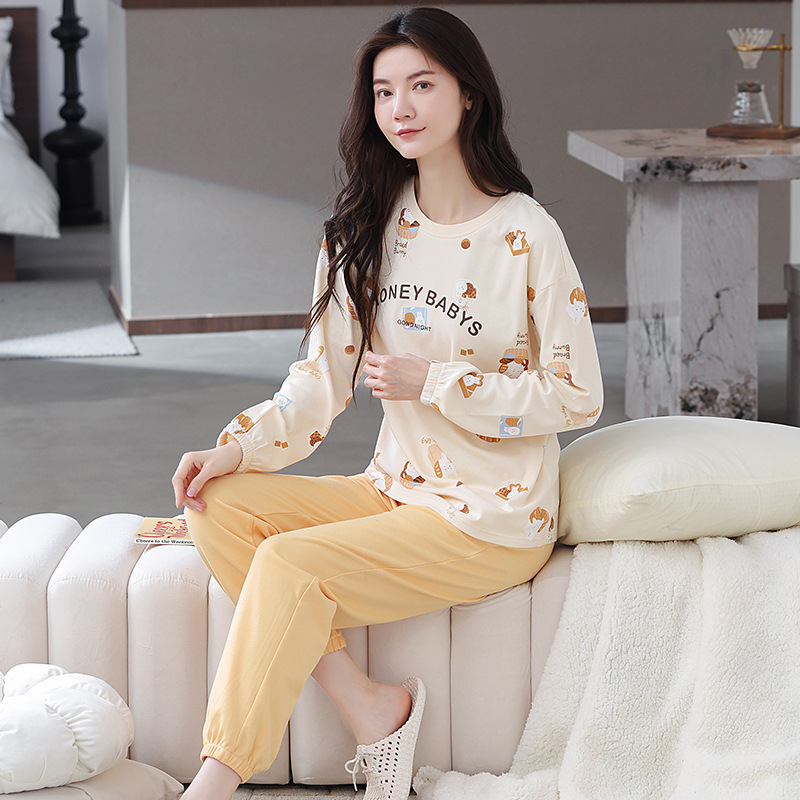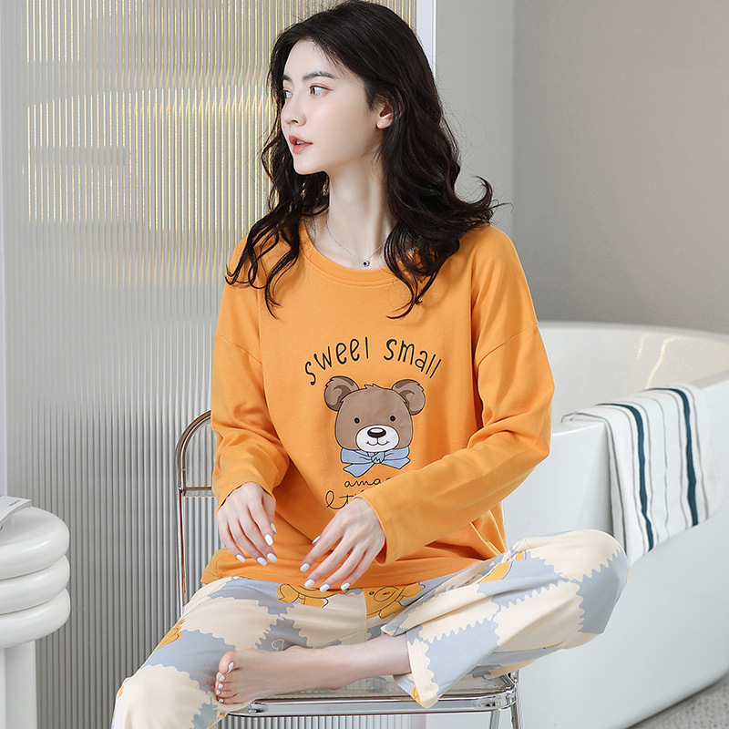 새로운 Aifenteng 잠옷 여성용 봄과 가을 면 긴 소매 긴 바지 가을과 겨울 면 겉옷 캐주얼 홈웨어 커버스토어 가기