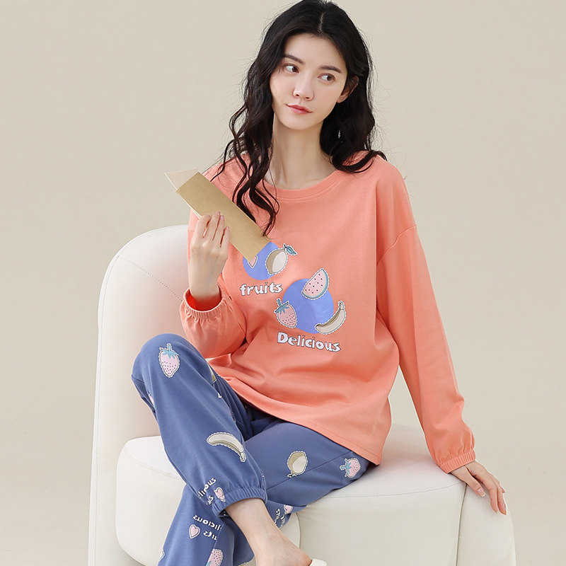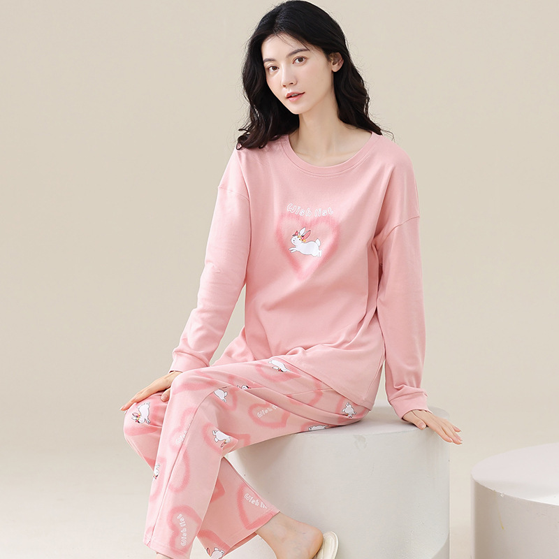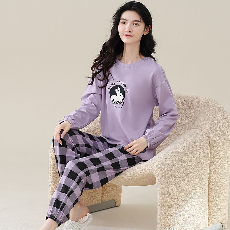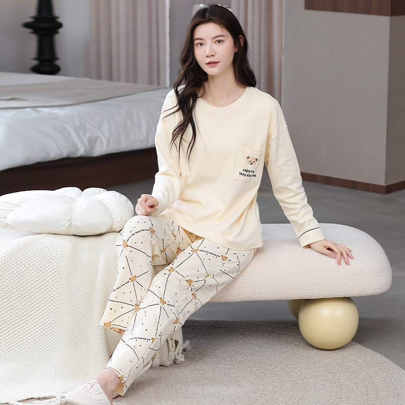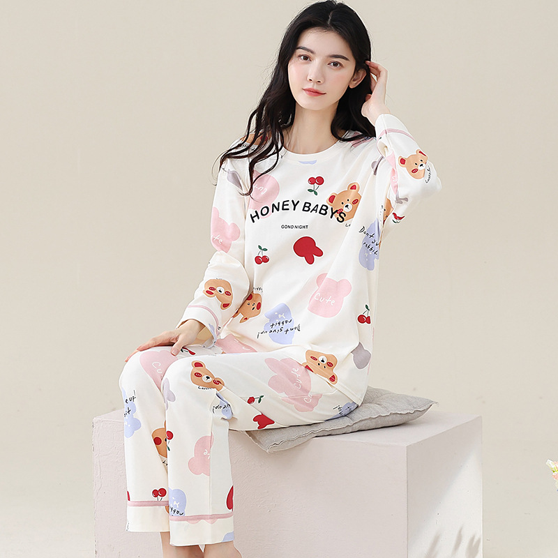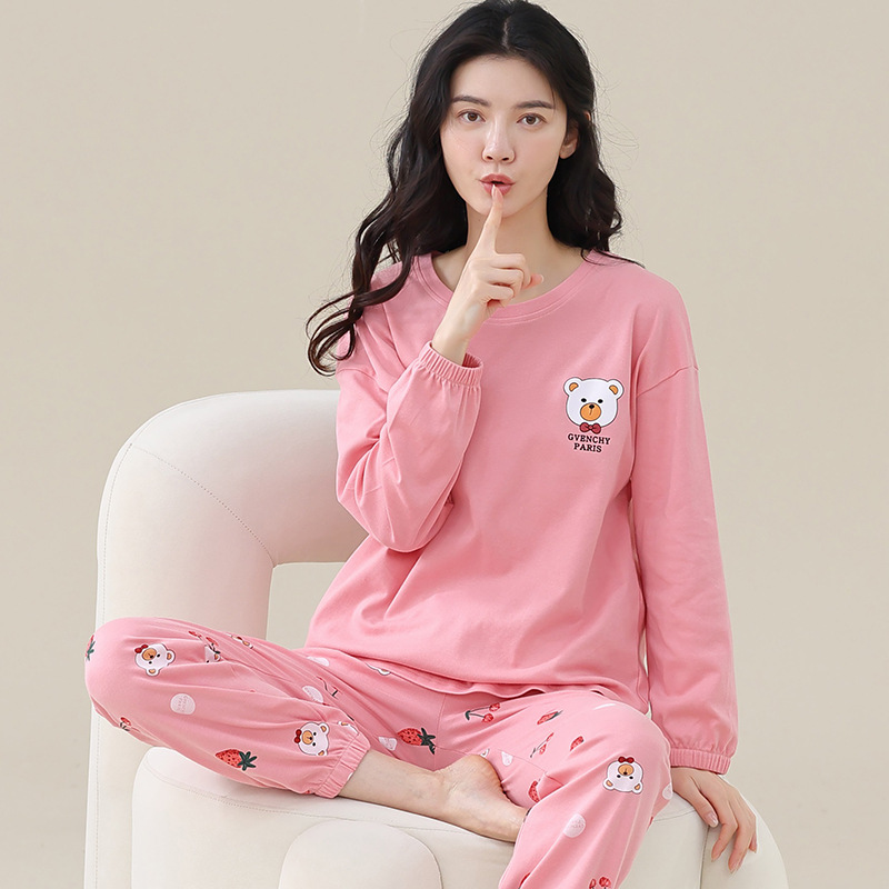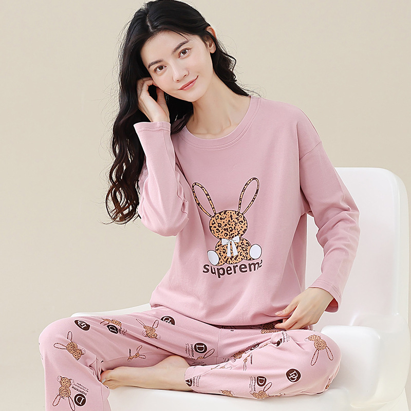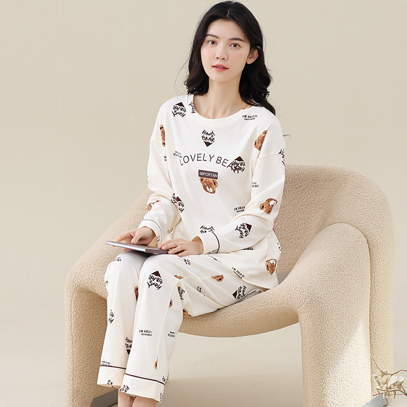 새로운 Aifenteng 잠옷 여성용 봄과 가을 면 긴 소매 긴 바지 가을과 겨울 면 겉옷 캐주얼 홈웨어 커버스토어 가기