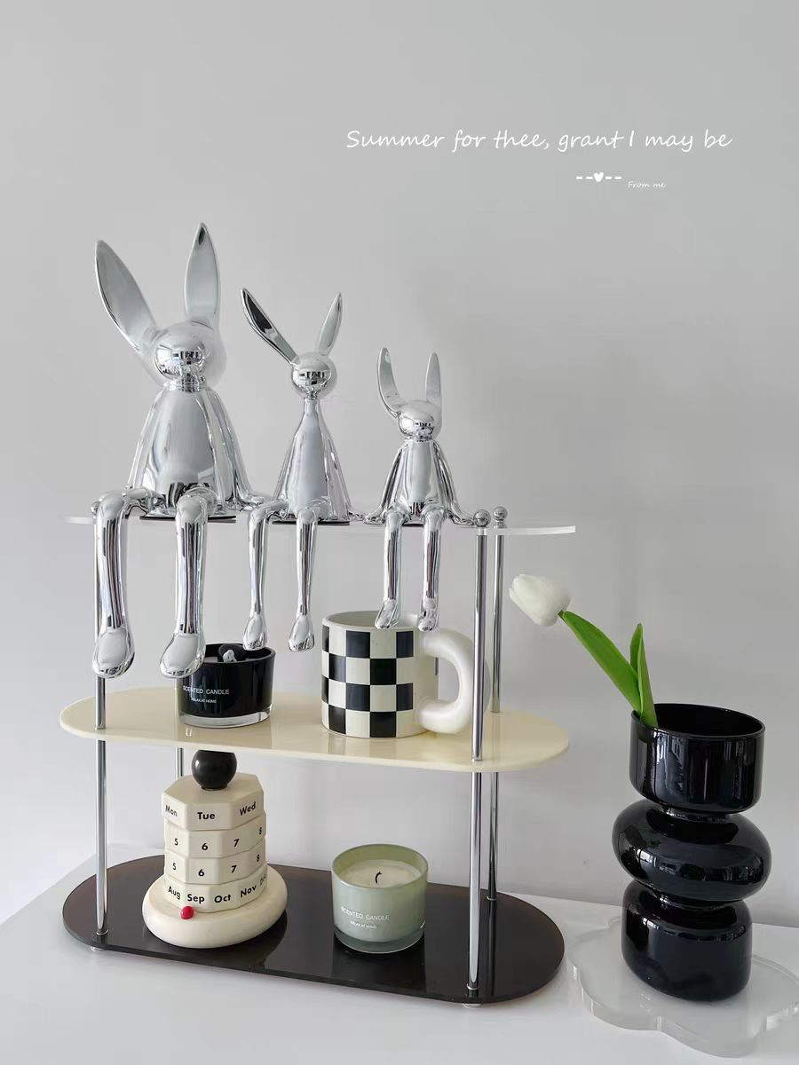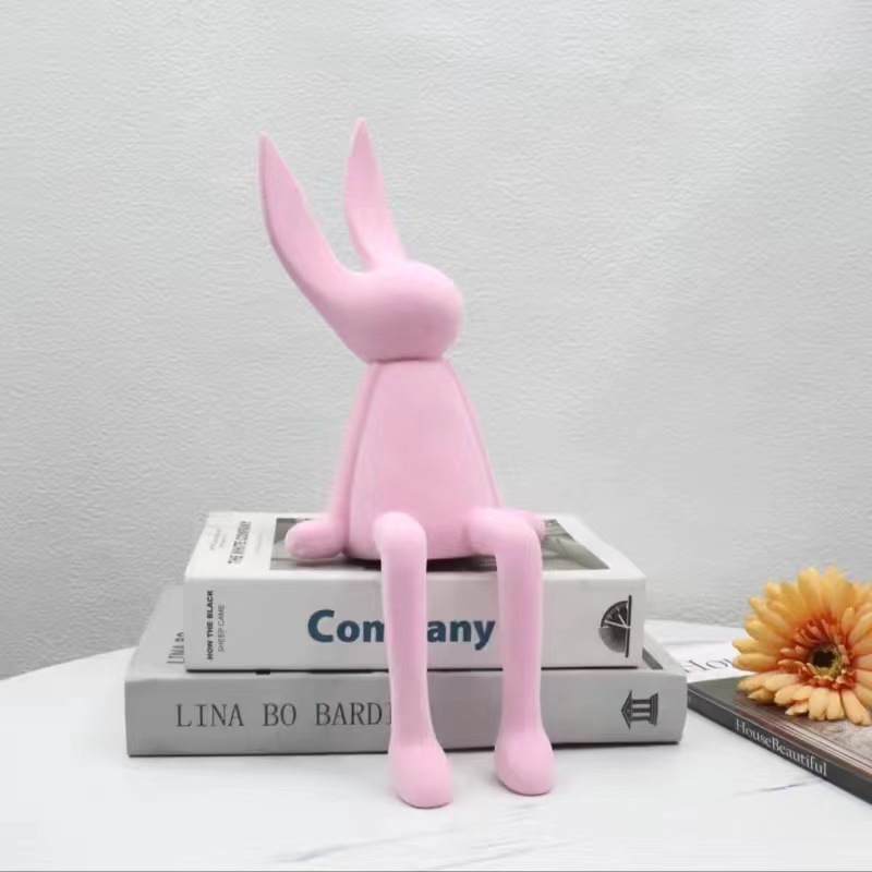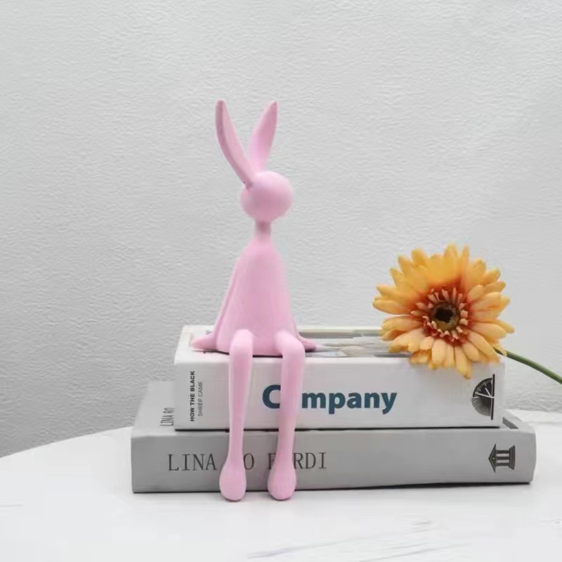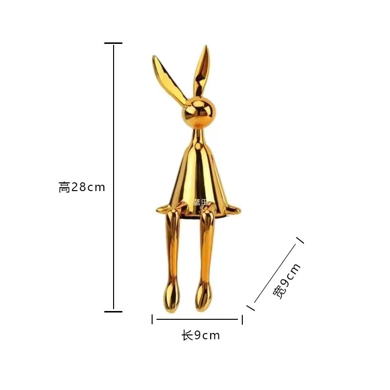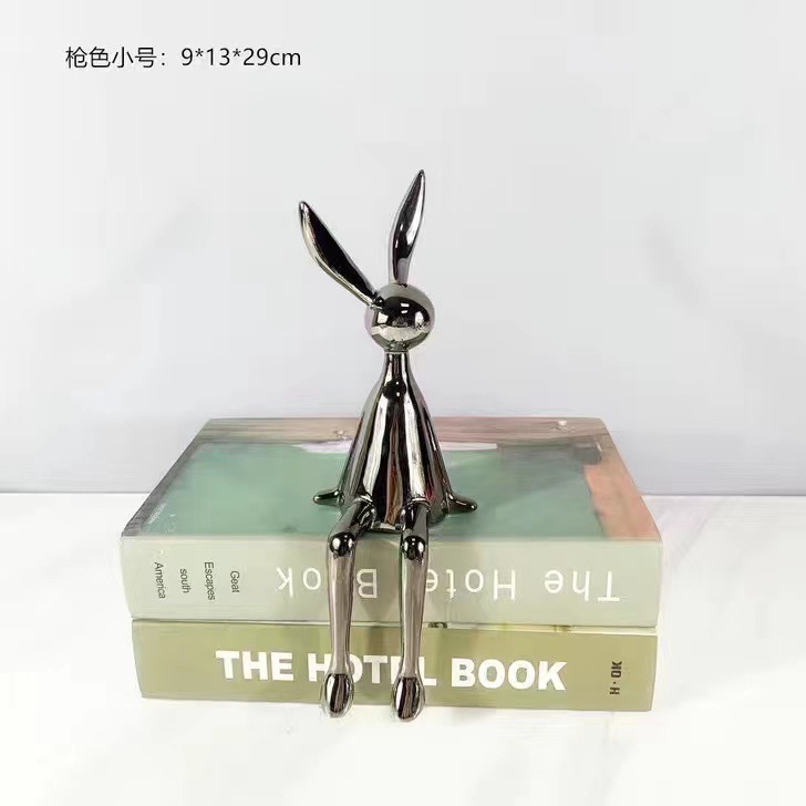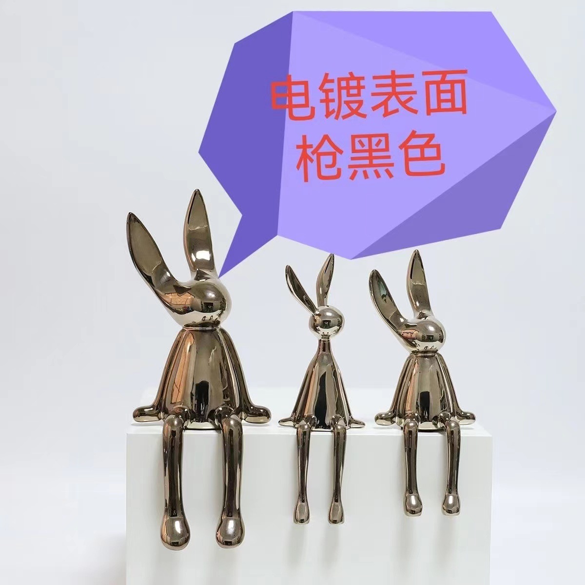 간단한 빛 럭셔리 창조적 인 전기 도금 실버 골드 블루 앉아 동물 토끼 장식품 수지 홈 부드러운 장식 공예