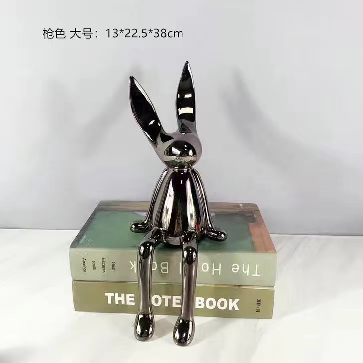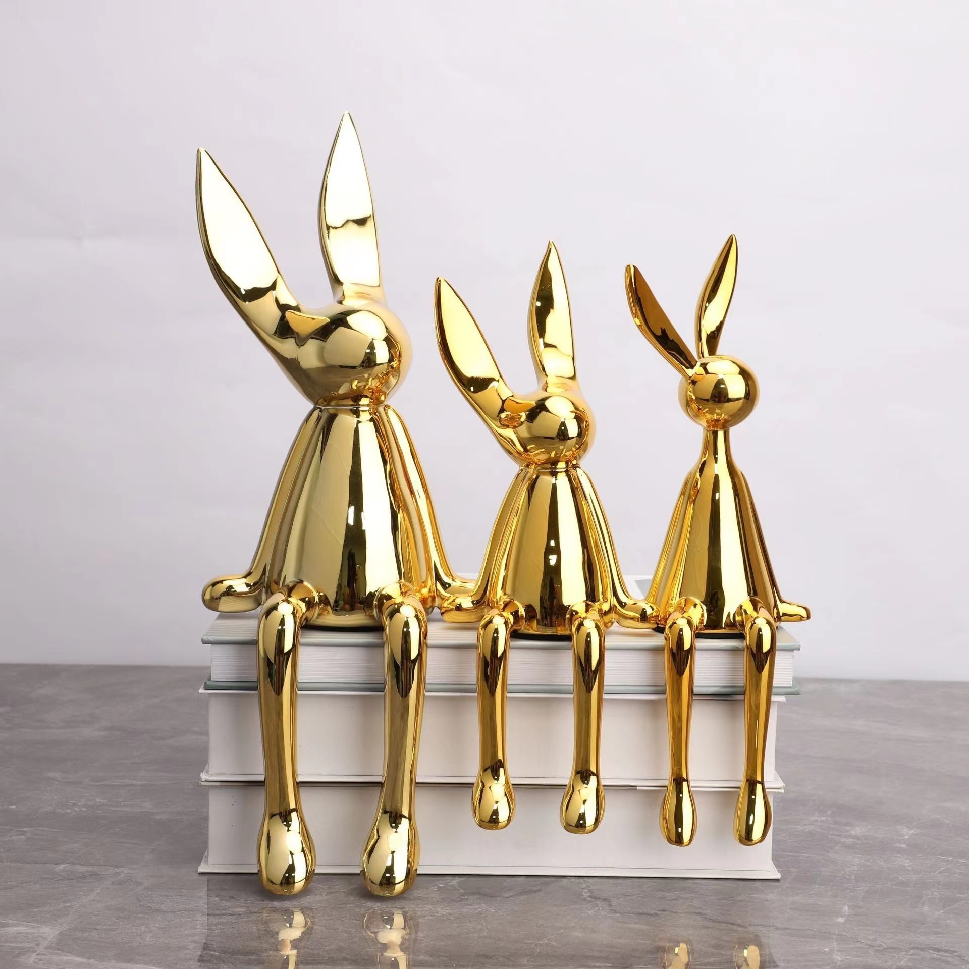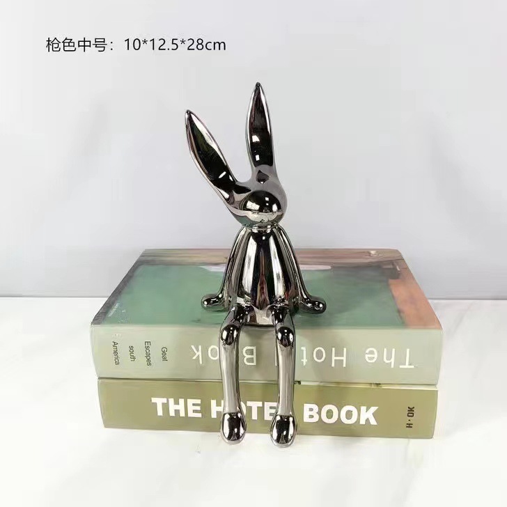 간단한 빛 럭셔리 창조적 인 전기 도금 실버 골드 블루 앉아 동물 토끼 장식품 수지 홈 부드러운 장식 공예스토어 가기
