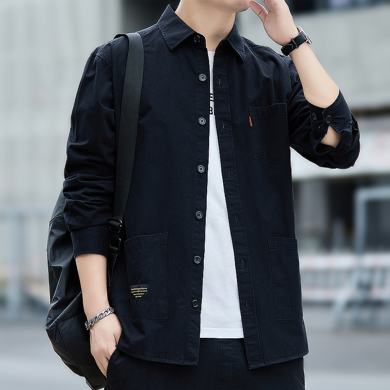 순면 세척 긴 소매 작업 셔츠 남성 코트 봄과 가을 캐주얼 셔츠 남성 의류스토어 가기
