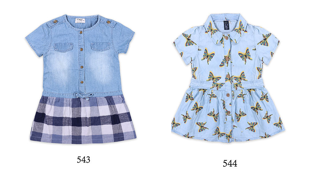 대외 무역 데님 원피스 재고 도매 소녀 2-8 세 아동 의류 데님 인쇄 된 짧은 소매 원피스스토어 가기