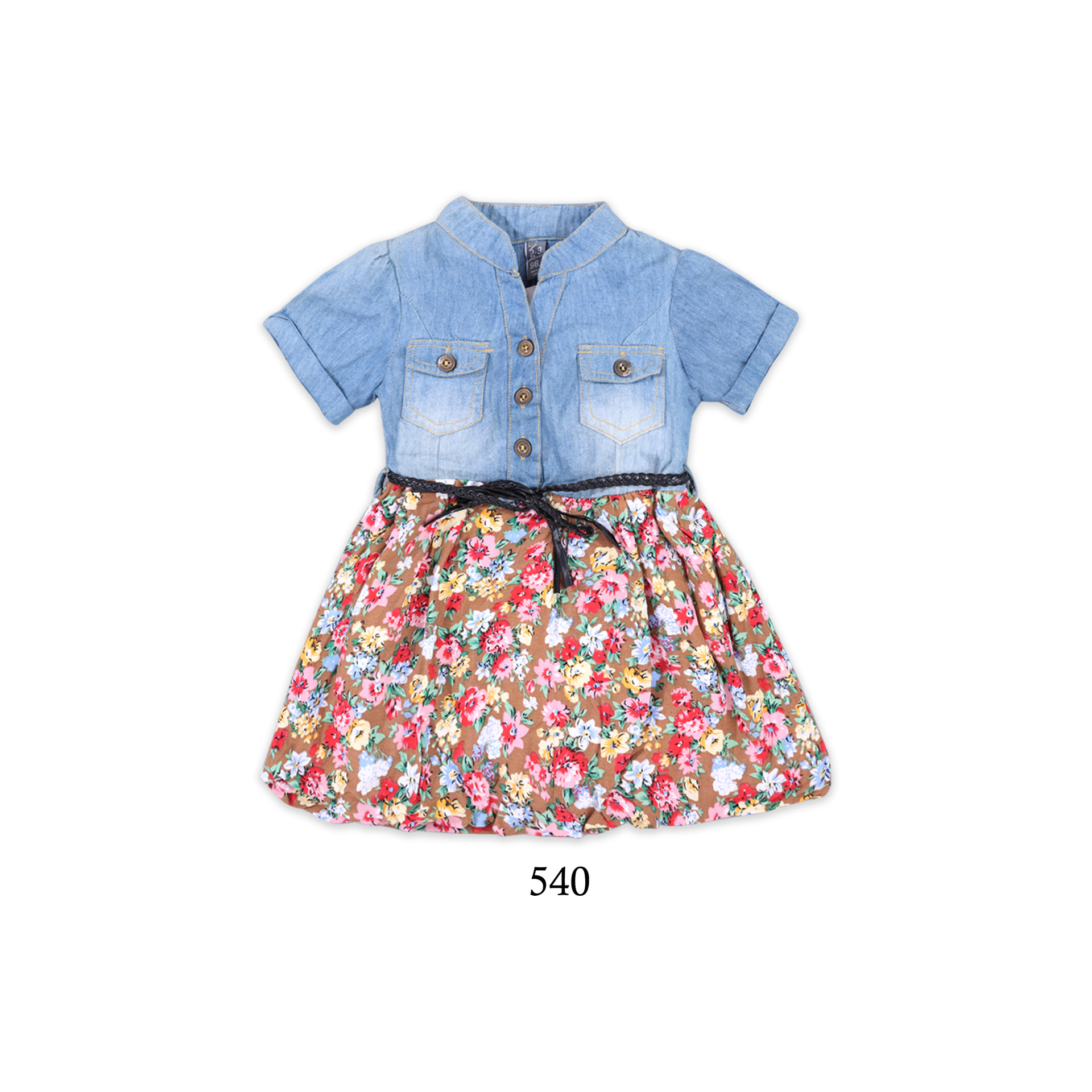 대외 무역 데님 원피스 재고 도매 소녀 2-8 세 아동 의류 데님 인쇄 된 짧은 소매 원피스