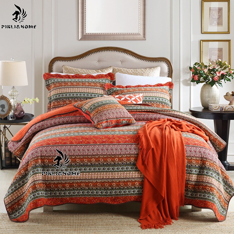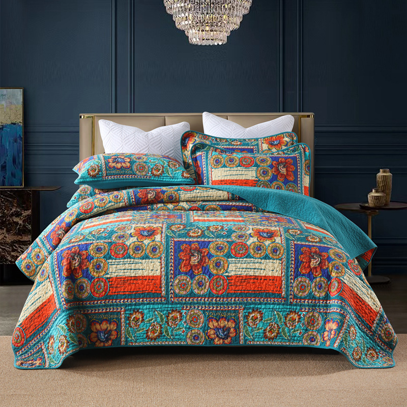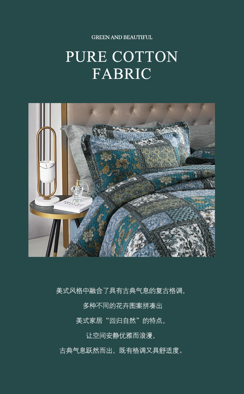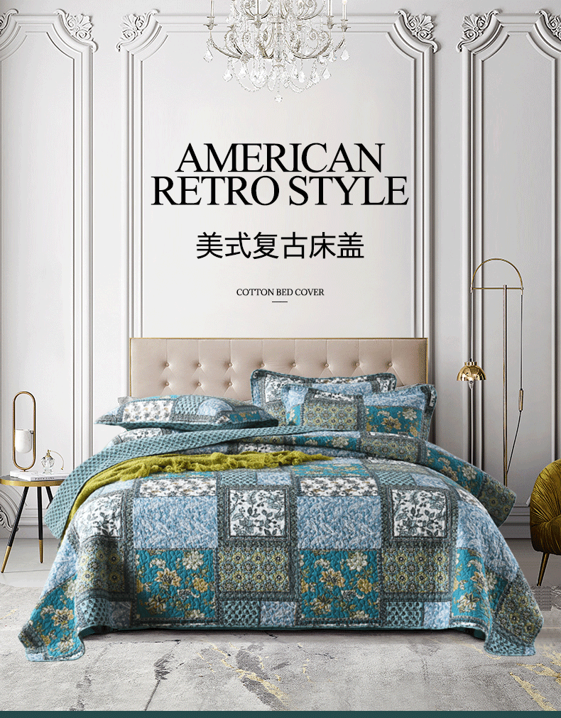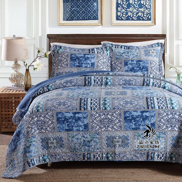 핀리 홈 섬유 해외 무역 면 침대 커버 3 종 세트 미국 모조 조각 이불 인쇄 면 에어컨 이불